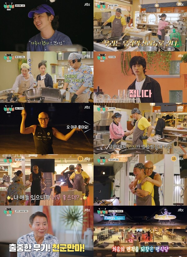 ▲24일방송된'팽봉팽봉'장면들.진검승부에돌입하는팽식당과봉식당의다음대결은오는31일오후7시10분에방송되는JTBC‘대결!팽봉팽봉’에서공개된다.제공|JTBC[스포티비뉴스=김원겸기자]팽식당이2연패후2연승을달성하며승부를원점으로되돌려놨다.24일방송된JTBC‘대결!팽봉팽봉’6회에서는새로운기준이도입된대결에서승리한팽식당의환호와마지막구원투수로등장한홍석천의봉식당합류과정이그려지며한치앞도예측할수없는전개로시청자들의도파민을자극했다.영업4일차부터저녁장사만진행하고누적순이익으로승패를가르게되자봉식당과팽식당은식재료부터주방시스템까지꼼꼼하게점검하며승부욕을끌어올렸다.이번에승리하면옆식당에서원하는메뉴와그에따른설비까지빼앗아올수있기에앞으로승부에도중요한분기점이될터.이미현지에입소문이난봉식당과팽식당에는저녁영업시작부터손님들이몰려왔고두식당멤버들은철저한준비와하이텐션으로손님을맞이했다.밀려드는주문에두식당모두자꾸만가출하려는멘탈을부여잡으며마지막까지승리를향한투혼을불태웠다.모두가정신없이주문지옥에빠져있을시각,홍석천은불쇼데뷔를위해무한특훈에들어갔다.불덩이에온몸이까맣게그을리면서도완벽한무대를향한노력을아끼지않았으며무대를앞둔긴장감과깜짝이벤트를선보이는설렘이공존하는홍석천의모습이웃음을자아냈다.영업종료후,제작진이선물한불쇼를관람하던봉식당과팽식당멤버들은뒤늦게해변무대에있는홍석천을발견하고혼돈에빠졌다.유승호는“보자마자오늘힘든거다없어졌다”고반가운마음을전하기도했다.그러나기쁨도잠시,요식업20년경력을자랑하는자타공인태국전문가홍석천이봉식당에합류하며팽식당을극도로긴장케했다.홍석천은봉식당에합류하자마자과감한결단으로메뉴전면수정에나서전문가의포스를뿜어냈다.이에질세라팽식당멤버들도재료단가에맞게가격을조정하는등열띤회의를벌여흥미를고조시켰다.그런가하면영업4일차대결결과,손님수와메뉴수,누적매출액까지앞섰던봉식당이누적지출액이컸던탓에팽식당에근소한차이로패하고말았다.처음의식당면적을되찾은팽식당멤버들은환호했지만2연패를경험한이봉원은“이건아니지,정신차려야지”라며제대로각성해앞으로의변화를기대하게만들었다.요리와식당경영은물론능숙한손님응대와적극적인유치까지가능한‘햇살알바생’홍석천의합류가원점으로돌아온봉식당과팽식당의승부에어떤영향을주게될지다음이야기에대한기대감을심어줬다.<저작권자ⓒSPOTVNEWS.무단전재및재배포금지>Copyright©스포티비뉴스.무단전재및재배포금지.