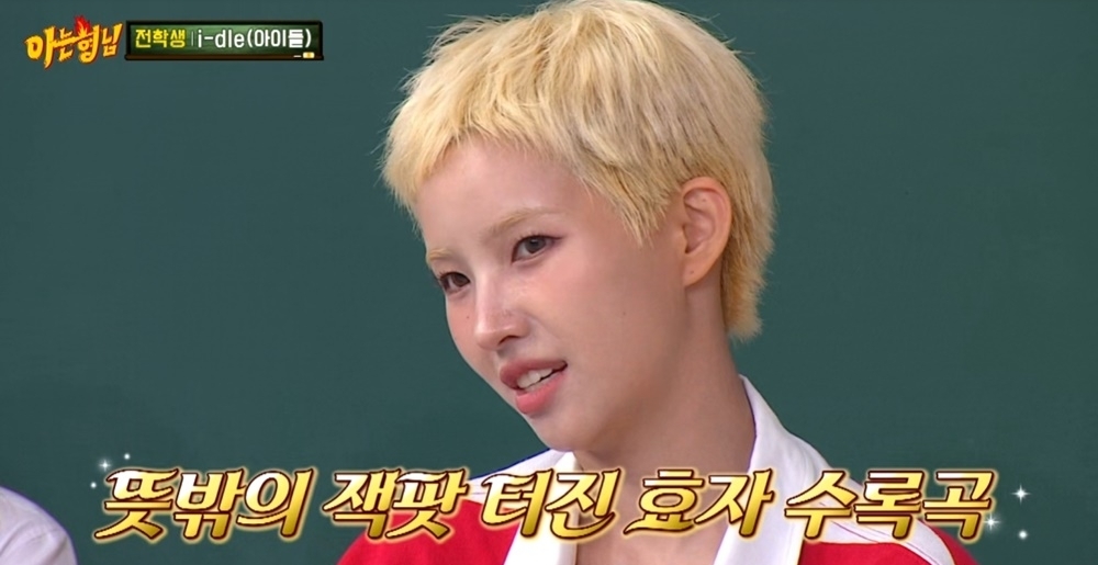 사진=JTBC‘아는형님’사진=JTBC‘아는형님’[뉴스엔박아름기자]아이들이막강한예능감을뽐냈다.아이들은지난5월24일방송된JTBC예능'아는형님'에출연,화끈한입담과파워풀한라이브실력을선보였다.이날소연은신곡'GoodThing'에대해"처음으로우리목소리가오토튠으로됐다.멤버들이처음들었을때전기맞은것같다고하더라"고소개했다.이어진'GoodThing'무대를지켜본'아는형님'출연진은금방춤을따라추며"기운이살아있다.기분이좋아진다","아이들만의색깔이있다"며감탄했다.이어진대화에서멤버들은각자뚜렷한매력으로깊은인상을남겼다.미연은자신만의밈'오늘도잘해보자'를전파했고,민니는자신이고정출연했던예능프로그램'아는외고'를향한남다른애정을드러냈다.우기는아이들내예능1위를자처하며자신감을보였고,드라마마니아슈화는액션연기를향한관심을내비쳤다.특히소연은지난해각종음원차트올킬을달성하며사랑받은곡'나는아픈건딱질색이니까'흥행을예상하지못했다고털어놨다.소연은"음원차트1위를했다.좋아하시는분들이아주많았다.수록곡이어서그렇게까지잘될줄은몰랐다"며놀라워했다.이어아이들은'나는아픈건딱질색이니까'와'클락션(Klaxon)'을시원한라이브로열창,'아는형님'교실을콘서트현장으로만들었다.후반부'형님학교'교실쟁탈전에서는'아는외고'부활을꿈꾸는민니를필두로멤버들모두남다른예능감을발산했다.각종게임마다서로다른멤버들이유쾌한웃음을선사하는데성공했다.한편아이들은5월25일방송되는SBS'인기가요'에출연,컴백무대를펼친다.뉴스엔박아름jamie@기사제보및보도자료[email protected]ⓒ뉴스엔.무단전재&재배포금지Copyright©뉴스엔.무단전재및재배포금지.