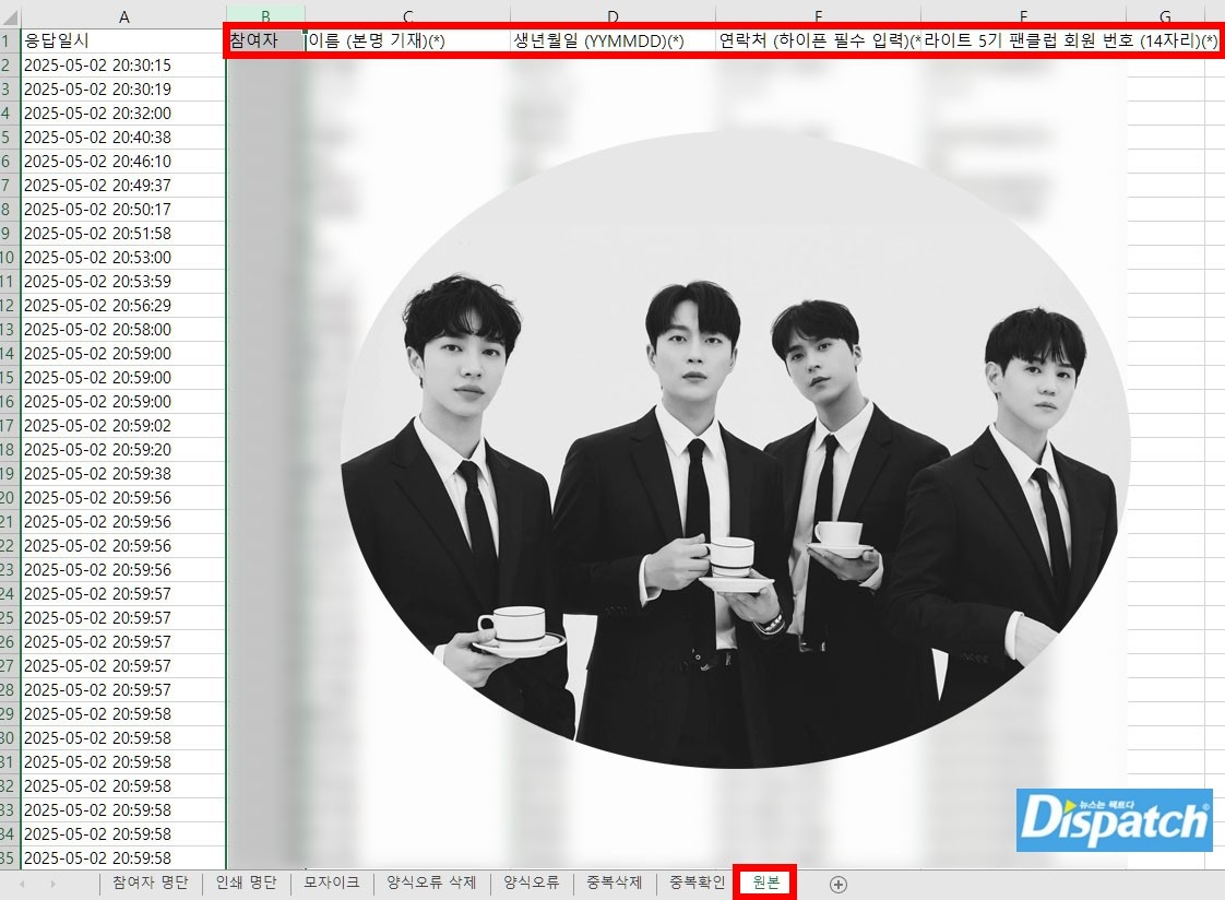 [Dispatch=구민지기자]하이라이트팬클럽(라이트)이개인정보유출피해를입었다.피해자만897명.소속사홈페이지에정보가고스란히노출됐다.어라운드어스는지난2일공식홈페이지에"하이라이트'인기가요'사전녹화참여안내"공지를올렸다.입장단280명을오픈할계획이었다.치명적실수를범했다.입장인원이아닌,신청자전원897명의정보가모두공개됐다.실명,연락처,생년월일,팬클럽회원번호등이유출됐다.팬들은불만을호소했다.팬A씨는'디스패치'에"소속사에전화했으나받지않았다.이메일도읽지않았다.어떠한피드백도없다"고호소했다.음악방송사전녹화는이른시간에진행된다.이날도하이라이트를보기위해서는등촌동SBS공개홀에오전6시25분까지집합해야했다.준비물도복잡하다.팬클럽카드,4종실물앨범,전곡음원구매내역서,본인확인페이지출력물,신분증,응원봉이있어야입장이가능하다.팬들은이른시간집합,복잡한준비물모두감수했다.약900여명팬들은공지에따랐으나,소속사의실수로정보유출이라는큰피해를입었다.어라운드어스관계자는21일'디스패치'와의통화에서"피해를막기위해모니터링중이었다.팬들에게사과하고공지문을올릴것"이라고밝혔다.피해사고3주만에대응했다.이날"빠르게후속조치를취하지못하여개인정보가유출된분들의심려를사게한점죄송하다"며고개를숙였다.이어"개인정보악용의심사례를접할경우메일로내용을전달해달라"면서"명의도용등2차피해예방을위해주의부탁드린다"고마무리했다.<다음은어라운드어스사과문전문이다.>안녕하세요.어라운드어스Ent.입니다.먼저하이라이트공식팬클럽라이트5기가입자일부의개인정보유출사실과관련하여진심으로사과드립니다.2025년5월2일진행된SBS인기가요사전녹화참여신청과관련하여라이트5기가입자중일부회원의개인정보가공개방송참여신청자안내과정에서유출되는사고가있었습니다.당시사전녹화의참여자안내를위한최종명단업로드과정에서참여가능자확인과정이담긴원본파일이업로드되었고업로드와동시에오류를확인,해당파일삭제및교체작업이진행되었습니다.이과정에서해당공개방송신청자분들의소중한개인정보가유출되었습니다.이에대하여진심으로사과의말씀을드립니다.상황파악이후바로빠르게후속조치를취하지못하여개인정보가유출된분들의심려를사게한점또한죄송합니다.당사는그동안혹여있을지모르는피해및팬여러분의개인정보보호를위해지속적인모니터링을하여왔으며,또한해당피해를입으신라이트5기여러분들의라이트5기회원번호및회원카드를재발급해드리고자합니다.재발급된라이트5기회원번호는5월23일부터팬클럽상품을구매하신주문자에게SMS와이메일로전송될예정입니다.또한재발급된회원번호가포함된회원카드는6월둘째주부터팬클럽키트가발송된주소로추가배송될예정입니다.콘서트선예매를위해필요한팬클럽인증기입내용중회원번호항목은재발급된번호로입력부탁드립니다.아울러이번유출사고로인해개인정보가악용된것으로의심되는사례를접하신분들의경우아래이메일을통해관련내용을전달해주시기바랍니다.또한추가로발생할수있는명의도용,피싱메일,스팸,악성코드유포등의2차피해를예방하기위해회원분들의각별한주의를부탁드립니다.▶피해등신고접수이메일:[email protected]당사는이번사안의심각성을엄중하게인식하고있으며,개인정보보호조치강화등내부관리체계를개선하여향후다시는이와유사한사례가발생하지않도록최선의노력을다하겠습니다.개인정보보안조치부족으로심려를끼쳐드려다시한번깊이사과드립니다.감사합니다.<사진출처=어라운드어스홈페이지,SNS>Copyright©디스패치.무단전재및재배포금지.