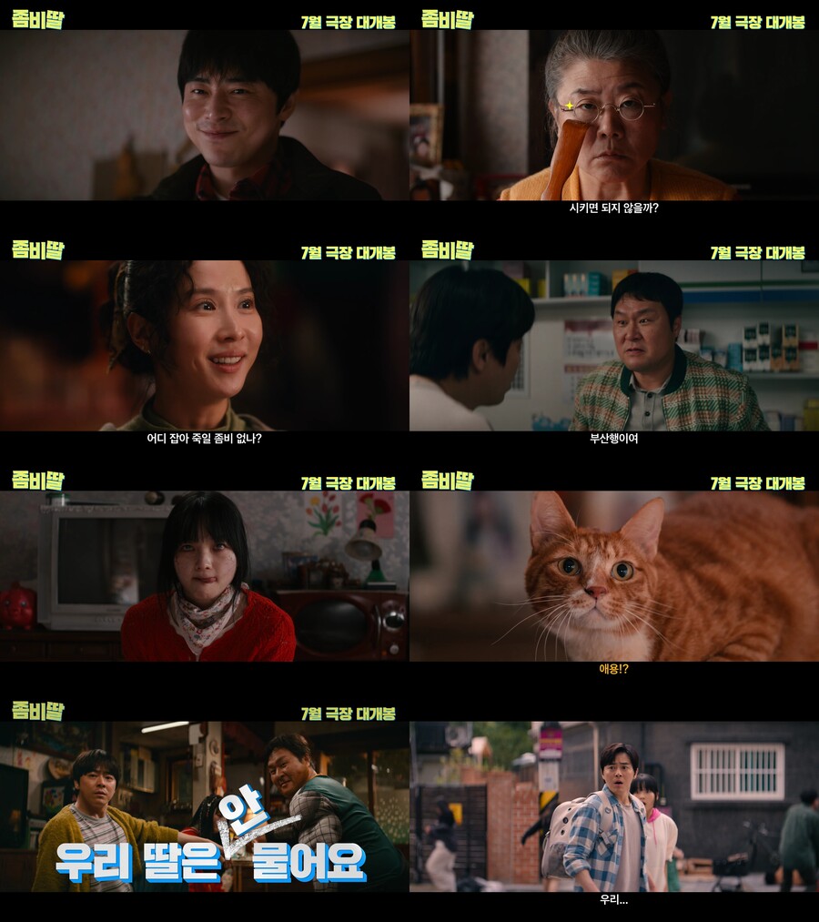 ▲출처|영화'좀비딸'티저[스포티비뉴스=김현록기자]조정석의여름극장가귀환,영화'좀비딸'이티저예고편을공개했다.오는7월개봉을알린영화‘좀비딸’(‘좀비가되어버린나의딸’)이티저예고편을공개했다.‘좀비딸’은이세상마지막남은좀비가된딸을지키기위해극비훈련에돌입한딸바보아빠의코믹드라마.이번에공개된티저예고편은시작부터좀비흉내를내며절체절명의위기를벗어나는조정석의능청스러운연기가유쾌한웃음을선사하며“올여름조정석이돌아온다”는카피로여름극장가를책임져온그의활약에대한기대를불러일으킨다.세상에마지막으로남은좀비가된딸‘수아’(최유리)를지키기위해어머니‘밤순’(이정은)이사는바닷가마을은봉리를찾은‘정환’(조정석).물려고드는‘수아’를자연스럽게제압하는‘정환’의모습이호기심을자극하는한편,이를지켜보는사랑스러운반려묘‘애용이’의모습이드디어공개돼이목을집중시킨다.한편“어디잡아죽일좀비없나?”라며좀비를혐오하는첫사랑‘연화’(조여정)의등장이‘정환’가족의위기를예고하며긴장감을자아내고,‘정환’은좀비를무서워하지만든든한지원군을자처한친구‘동배’(윤경호)와함께본격좀비딸길들이기에돌입한다.기본적인인사예절부터체조와춤,안물기훈련까지아슬아슬하면서도흥미진진한훈련기가이어지며‘딸바보아빠’로완벽하게녹아든조정석의생활밀착형코믹연기가빛을발하는가운데,원작웹툰의‘밤순’과100%싱크로율을과시하는이정은의등장이감탄을자아낸다.▲영화'좀비딸'.제공|NEW기발한설정과예측불가한전개로어디서도본적없는좀비영화의탄생을기대케하는‘좀비딸’은조정석,이정은,조여정,윤경호등베테랑배우들의완벽한케미스트리가기대감을한층끌어올리고,사랑스러운‘좀비’로분한최유리의변신이시선을사로잡는다.‘인질’,‘운수오진날’을연출한필감성감독과‘스위트홈’,‘정년이’,‘중증외상센터’등화제작을탄생시킨스튜디오N이의기투합한‘좀비딸’은기존좀비소재장르물의틀을벗어나유쾌하고따뜻한웃음을선사하는새로운좀비영화의탄생을알린다.영화‘좀비딸’은오는7월전국극장에서개봉한다.<저작권자ⓒSPOTVNEWS.무단전재및재배포금지>Copyright©스포티비뉴스.무단전재및재배포금지.