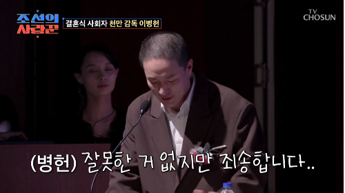 심현섭결혼식에두명의‘이병헌’이등장했다.한명은불참했지만존재감을남겼고,다른한명은직접사회를맡아현장을뒤집었다.19일방송된TV조선예능‘조선의사랑꾼’에서는개그맨심현섭과정영림부부의결혼식현장이공개됐다.이날사회는다름아닌영화감독이병헌이맡았다.그는영화‘극한직업’과최근유튜브숏드라마‘작자미상’을연출한실력파감독이자,이름덕분에매번‘배우이병헌’과의착각을불러일으키는인물이다.심현섭은당초고등학교선배인배우이병헌에게사회를부탁하려했지만,바쁜영화홍보일정으로무산됐다.대신동명이인인영화감독이병헌이‘깜짝캐스팅’되며현장에는웃음이터졌다.이날이병헌감독은“자신이없다.내이름을말하는데왜내가죄책감을느끼는지모르겠다”며농담반진담반의인사로분위기를띄웠다.이어“여기오신분들중‘진짜이병헌’기대하신분들,잘못한건없지만죄송하다”고재치있게사과하며웃음을자아냈다.하객들역시안내판에적힌‘이병헌대기실’을보고“진짜야?”라며두눈을의심했다는후문.그만큼이름이주는기대치가컸다.이병헌감독은“두분의러브스토리를정주행했는데,한편의영화같았다”며“이런결혼식의한장면을함께할수있어정말영광”이라고진심어린소감을밝혔다.현장은그야말로‘웃음과감동’의시소가이어지는순간이었다.한편배우이병헌은결혼식에는참석하지못했지만,아내이민정과함께이름을올린화환과영상메시지를보내진심을전했다.그역시“심현섭이부족한후배지만잘부탁드린다”며특유의진중한톤으로축하를전했다.배우는불참했지만,감독은맹활약.심현섭의결혼식은두이병헌덕분에어느행사보다특별한하루로기록됐다.[김승혜MK스포츠기자][ⓒMK스포츠,무단전재및재배포금지]Copyright©MK스포츠.무단전재및재배포금지.