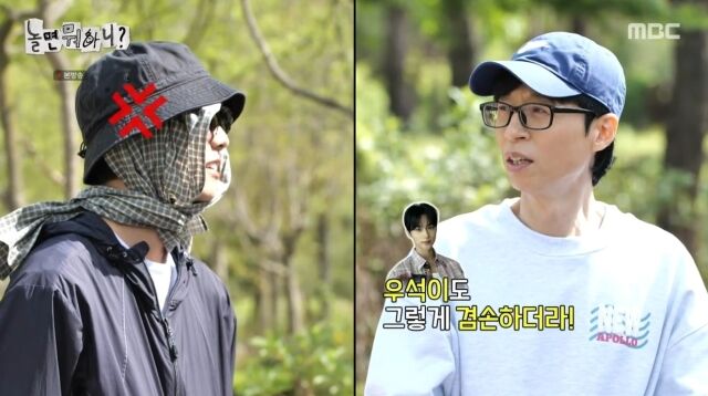 ‘놀면뭐하니’.사진IMBC유재석이주우재에게일침을가했다.17일오후방송된MBC예능프로그램‘놀면뭐하니?’(연출김진용장우성장효종왕종석,작가최혜정)에는주우재를놀리는유재석이모습을보였다.이날방송에서유재석은가수병에걸린주우재에“우석이가그렇게겸손하더라!백상가서우석이를봤는데‘늘방송에서저언급해주셔서감사합니다’이러더라”라며변우석을언급했다.하하가“옆에있는애들이더설쳐요”라고하자유재석은“그러니까!원래그계보가있어.조인성친구이광수,변우석친구주우재!우석이는그렇게겸손하더라!”라며주우재를놀렸다.끝내참지못한주우재는“나도겸손해!그래도형들이이렇게또패주니까일주일정도젖어있었는데확깨지네”라며현실을자각했다.MBC‘놀면뭐하니?’는매주토요일오후6시30분방송된다.[서예지스타투데이객원기자]Copyright©스타투데이.무단전재,재배포및AI학습이용금지