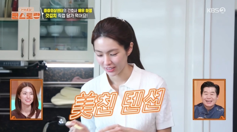KBS2TV‘신상출시편스토랑’캡처KBS2TV‘신상출시편스토랑’캡처[뉴스엔김명미기자]하영이집에서김장을했다.5월16일방송된KBS2TV'신상출시편스토랑'(이하편스토랑)에는넷플릭스시리즈'중증외상센터'로많은관심을받은하영이출연했다.이날하영은아침7시30분부터라면을끓여밥까지말아먹더니갓김치담그기에나섰다.하영은"라면먹으면서김치를다먹은거다.갓김치를너무좋아해서집에서담가보려한다"고말했다.이어하영은"김장경험이많다.엄마한테맨날노동착취당했다.김장을정말많이하는데,어깨너머로양념을배우면서대충담글수있게됐다"고밝혔다.또하영은"한식을제일좋아한다.오히려찌개종류가제일쉽다.언니,형부,조카랑같이사니까조카의끼니를챙겨야될때가있다"며요리실력을자랑했다.한편하영은이날방송을통해"아버지와언니가의사,어머니가간호사"라고밝혀눈길을끌었다.뉴스엔김명미mms2@기사제보및보도자료[email protected]ⓒ뉴스엔.무단전재&재배포금지Copyright©뉴스엔.무단전재및재배포금지.