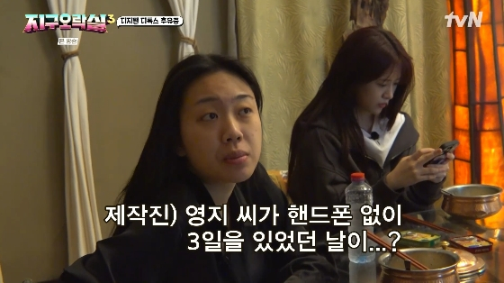 [스타뉴스|김정주기자]/사진=tvN'뿅뿅지구오락실3'방송화면'뿅뿅지구오락실3'에서가수이영지가디지털디톡스의후유증을토로했다.16일방송된tvN'뿅뿅지구오락실3'에서는기상미션에실패해휴대폰을뺏긴이영지가후유증에시달리며괴로워하는모습이그려졌다.앞서이영지는휴대폰없이아침8시에일어나는기상미션에서4위를기록해디지털디톡스70시간이추가됐다.미미와안유진은각각17분과25분의오차를기록해휴대폰과노트북을돌려받았고,이은지는38시간이추가됐다.이날휴대폰을돌려받은안유진은셀카를찍으며승자의여유를만끽했다.이에이영지는부러움을표하며"이틀하고도22시간을휴대폰없이살라니..."라고울부짖었다.그는"휴대폰없이살았던날이중학생이후로없다"라고답답함을호소했다./사진=tvN'뿅뿅지구오락실3'방송화면안유진은"전좀도파민의세계로가겠다.유튜브,틱톡,인스타.도파민의삶으로간다"고웃음을감추지못했고,이영지는거실을배회하다가제작진의숙소를방문했다.이영지는"휴대폰이없으니까할게없느냐"라는제작진의질문에"금단현상이엄청온다.화장실갈때좀심하다.다음일정이11시라고했는데언제가11시인지도알수가없다"라고호들갑을떨어웃음을유발했다.김정주기자[email protected]©스타뉴스&starnewskorea.com,무단전재및재배포금지