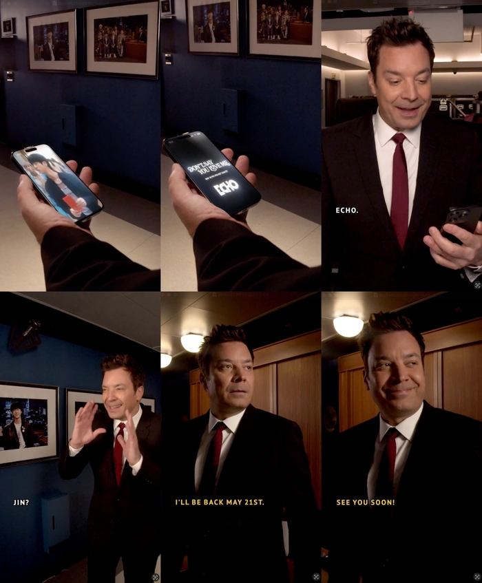 ‘더투나잇쇼스타링지미팰런’.사진|빅히트뮤직[스포츠서울|이승록기자]방탄소년단진이또한번‘지미팰런쇼’에뜬다.15일소속사빅히트뮤직에따르면진은오는22일(이하한국시간)미국NBC인기프로그램‘더투나잇쇼스타링지미팰런’(TheTonightShowStarringJimmyFallon,이하‘지미팰런쇼’)에출격한다.이날방송에서진은16일발매되는미니2집‘Echo’의타이틀곡‘Don’tSayYouLoveMe’무대를선보일예정이다.‘지미팰런쇼’는14일밤공식SNS에진의출연을예고하는영상을깜짝게재했다.영상에는진행자지미팰런이휴대전화로진의신곡‘Don’tSayYouLoveMe’티저를감상하며“ECHO…”라고속삭이는장면이담겼다.이어두사람의유쾌한대화가스튜디오전역에메아리처럼울려퍼져분위기를고조시켰다.영상말미에진은“I’llBEBACKMAY21ST.SEEYOUSOON”이라고말해본방송에대한기대감을높였다.진은지난해11월솔로아티스트로서‘지미팰런쇼’에첫출연해솔로앨범‘Happy’의타이틀곡‘RunningWild’무대를꾸민바있다.약6개월만에다시출연하는진이어떤새로운모습을보여줄지기대된다.진은‘지미팰런쇼’를시작으로북미활동에박차를가한다.오는23일뉴욕에서스페셜팬이벤트‘Hi-Seokjin’을개최하고1000명의아미(ARMY.팬덤명)와하이터치등을통해가까이소통할계획이다.진의미니2집‘Echo’는삶의다양한순간들이각기다른모습의‘울림’처럼퍼져나가는모습을그린앨범이다.타이틀곡은‘Don’tSayYouLoveMe’다.연인과의관계가무너져가는상황에서도사랑때문에서로를놓지못하는아이러니를노래한곡이다[email protected]©스포츠서울.무단전재및재배포금지.