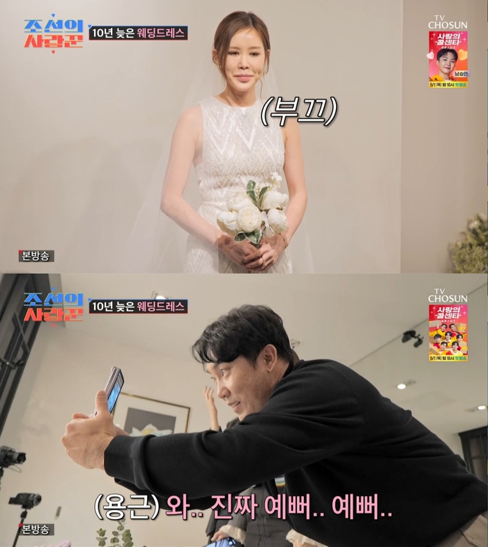 ‘조선의사랑꾼’.사진ITV조선‘조선의사랑꾼’방송캡처가수채리나가결혼10년만에웨딩드레스를입었다.28일방송된TV조선‘조선의사랑꾼’에서는채리나,박용근부부의결혼식준비과정이그려졌다.이날채리나,박용근부부는10년만의결혼식을앞두고드레스투어에나섰다.채리나가드레스를입으러간사이,박용근은이민경에게리액션꿀팁을전수받았다.채리나가첫번째드레스를입고나오자박용근은눈을떼지못하며감탄만내뱉었다.이어“진짜예쁘다”라며채리나의모습을영상으로담기시작했다.채리나가두번째드레스로갈아입는사이,박용근은자신이찍은영상을돌려봤다.이를보던이민경이“좋단다”라며놀리자박용근은“예쁘지않냐”며채리나에대한애정을드러냈다.한편‘조선의사랑꾼’은매주월요일오후10시방송된다.[이세빈스타투데이객원기자]Copyright©스타투데이.무단전재,재배포및AI학습이용금지