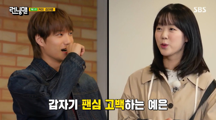 SBS‘런닝맨’캡처SBS‘런닝맨’캡처[뉴스엔장예솔기자]배우지예은이엑소원픽멤버로카이를꼽았다.4월27일방송된SBS'런닝맨'은'솔로하기좋은날'레이스로꾸며진가운데카이,김아영이게스트로출연했다.11년만에'런닝맨'을찾은카이는"제가군복무후사회에나온지두달째다.그래서지금이상황이너무신기하다"고전했다.지예은은"'으르렁'활동할때카이님제일좋아했다.제일춤을잘춘다"며엑소원픽멤버가카이라고고백했다.지석진이"근데되게덤덤하다.안떨리냐"고의아해하자하하는"왜냐면안될거아니까"라고받아쳐웃음을자아냈다.뉴스엔장예솔imyesol@기사제보및보도자료[email protected]ⓒ뉴스엔.무단전재&재배포금지Copyright©뉴스엔.무단전재및재배포금지.