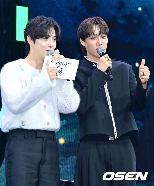 [OSEN=민경훈기자]그룹엑소(EXO)의멤버카이네번째미니앨범'웨이트온미(WaitOnMe)'발매쇼케이스가21일오후서울광장동예스24라이브홀에서열렸다.쇼집해제후첫컴백앨범인'웨이트온미'에는타이틀곡'웨이트온미'를포함해'어덜트스윔'(AdultSwim),'월스돈트토크'(WallsDon'tTalk),'프레셔'(Pressure)등총7곡이담겼다.엑소카이가진행MC엑소수호와함께포즈를취하고있다.2025.04.21/[email protected][OSEN=김채연기자]엑소수호가카이의2년만컴백을응원하기위해진행마이크를들었다가현장을초토화시켰다.현장에있는취재진이빵터진상황에서수호는여전히긴장속에서걱정을이어갔다.21일서울광진구YES24라이브홀에서카이의네번째미니앨범‘WaitOnMe’발매기념쇼케이스가진행됐다.쇼케이스진행은같은그룹인엑소의리더수호가맡았다.[OSEN=민경훈기자]그룹엑소(EXO)의멤버카이네번째미니앨범'웨이트온미(WaitOnMe)'발매쇼케이스가21일오후서울광장동예스24라이브홀에서열렸다.쇼집해제후첫컴백앨범인'웨이트온미'에는타이틀곡'웨이트온미'를포함해'어덜트스윔'(AdultSwim),'월스돈트토크'(WallsDon'tTalk),'프레셔'(Pressure)등총7곡이담겼다.엑소카이가무대위에서포토타임을하고있다.2025.04.21/[email protected]이날MC로나선수호는“대세쇼케이스아니냐.2년만에소집해제후돌아온카이씨모셔보겠다”고소개하며본격적인진행을맡았다.무대에올라온카이도“안녕하세요,카이입니다.와주셔서다시한번더감사하다.지금저보러오신걸후회하지않게만들어드리겠다.최선을다해서이야기하고,무대보여드리겠다”고각오를밝힌뒤“진행맡아준수호형에게고맙다는말을드리고싶다.또저없는동안수호형이랑찬열이형이‘투지’무대를한걸잘봤다.이렇게힘을줘서감동이다”고수호의근황을전했다.가볍게인사를마무리한뒤카이는포토타임부터앨범소개,타이틀곡및수록곡소개등토크를이어갔다.앨범과관련된토크가마무리된뒤카이는무대를준비하러이동했다.무대위에홀로남은수호는마이크를잡고MC를맡은심경을털어놨다.깊은한숨속에서수호는“제가(진행을)가볍게생각했던것같다.멤버와채팅하는마음으로왔는데,무거운마음으로왔어야했다.기자님들만가볍게오셔야했는데,엑소리더아니수호로서죄송하다”고사과했다.[OSEN=민경훈기자]그룹엑소(EXO)의멤버카이네번째미니앨범'웨이트온미(WaitOnMe)'발매쇼케이스가21일오후서울광장동예스24라이브홀에서열렸다.쇼집해제후첫컴백앨범인'웨이트온미'에는타이틀곡'웨이트온미'를포함해'어덜트스윔'(AdultSwim),'월스돈트토크'(WallsDon'tTalk),'프레셔'(Pressure)등총7곡이담겼다.진행을하던엑소수호가포토타임을갖고있다.2025.04.21/[email protected]수호의갑작스러운사과에취재진들의웃음이터진사이“좀더원활하고,슈퍼주니어선배님이나전문MC분들(영상)을보고왔어야하는게아닌가좀까마득하다.오랜만에컴백이라SM대표님도오시고,센터장님도오셨는데오늘이후로저는엠씨는못하게될것같다.후배들데뷔한다고저를부를일은없을것같다”고털어놓은뒤“한편으로는속이시원하다”고토로했다.이어“카이의네번째미니앨범도많이사랑해주시고요,저도많이사랑해주세요”라며,그동안의근황에대해“(저는)장기간미국에서체류하다가개인시간을갖고왔다.하기로한일정이딜레이되면서미국에서좋은시간을보내고있다.저또한새로운앨범을보내고있다.재밌는음악과퍼포먼스를준비하고있으니까기대많이해주셨으면좋겠다.그때는꼭전문MC를섭외하겠다”고덧붙여웃음을자아냈다.토크를이어가던수호는그럼에도카이가올라오지않자“무슨이야기를해야할지모르겠다”며마가뜨는것을두려워했고,이때한취재진이포토타임을요구하자현장에서급하게포토타임을진행해현장을빵터트렸다.[OSEN=민경훈기자]그룹엑소(EXO)의멤버카이네번째미니앨범'웨이트온미(WaitOnMe)'발매쇼케이스가21일오후서울광장동예스24라이브홀에서열렸다.쇼집해제후첫컴백앨범인'웨이트온미'에는타이틀곡'웨이트온미'를포함해'어덜트스윔'(AdultSwim),'월스돈트토크'(WallsDon'tTalk),'프레셔'(Pressure)등총7곡이담겼다.엑소수호가진행으로카이가환하게웃고있다..2025.04.21/[email protected]수호는포토타임이끝나자“카이가카이했다.실망시키지않는최고의무대였다.카이씨,카이씨?아직이군요”라면서“기자님들의질문전에제가먼저물어보고싶은게있다.왜이렇게노출이많은건지.제가이질문을해보겠다”고말했다.이에카이는무대로등장하면서“형의엠씨보는모습을계속보고싶어서나오고싶지가않았다”며“자아성찰을많이하신것같다.14년차인데도무대위에서배우는형의모습을보면서우리가아직갈길이멀구나.그생각을다시했다”고장난을쳤고,수호는“기자님들이저를보면서‘저친구는아직도저렇게순수하지’할거다”라고너스레를떨었다.이와함께수호는자신이준비한질문을건네며“다른뮤직비디오에비해노출이많았다.본인의선택이었냐”고물었고,카이는“저의선택이냐고요?”라고되물으며“그럼회사가억지로시켰다는거냐.이번타이틀곡을어떤모습을보여드리면좋을까생각했는데,사막이나오니까뜨거운바람이느껴졌으면좋겠다.저까지옷을입고있으면더워보이니까시원하게벗고나왔다”