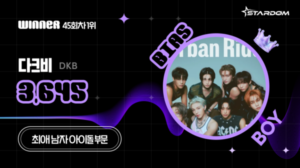 ▲다크비가4월둘째주스타덤'최애아이돌'남자부문주간랭킹1위를차지한투표결과이미지.[스포티비뉴스=김원겸기자]그룹다크비가스타덤'최애아이돌'첫1위를차지했다.다크비는4월둘째주(집계기간4월7일~4월13일)스타덤'최애아이돌'남자부문주간랭킹에서정상을차지했다.다크비는집계기간동안3645표를얻어감격의1위에올랐다.4주간1위를지키던임영웅은3615표로2위에머물렀다.다크비와임영웅의표차는불과30표다.2020년2월데뷔한다크비는용감한형제가론칭한보이그룹으로이찬,D1,GK,희찬,룬,준서,유쿠,해리준으로이뤄져있다.한편,'최애아이돌'여자부문에서는피프티피프티가무려28주연속1위를차지했다.'최애트롯스타'남녀부문에서는손태진,김의영이나란히1위에올랐다.'최애루키아이돌'남녀부문은엔싸인,유니스가각각정상을차지했다.다양한부문의랭킹을보여주는'스타덤'은스타와팬들을연결해주는모바일애플리케이션으로,'나의최애셀럽을우주대스타로만든다'는캐치프레이즈아래스타와팬들을다양한방식으로연결한다.<저작권자ⓒSPOTVNEWS.무단전재및재배포금지>Copyright©스포티비뉴스.무단전재및재배포금지.