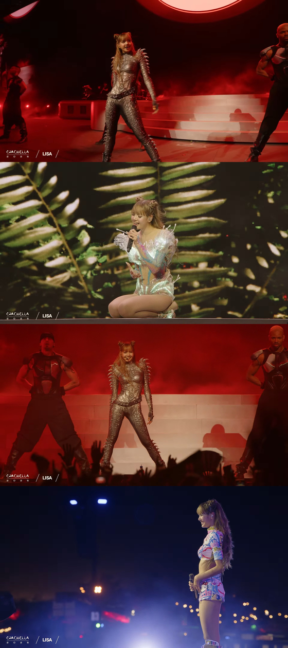 가수리사.'코첼라'유튜브생중계영상캡처블랙핑크리사가'코첼라'솔로무대를성공적으로마쳤다.리사는한국시간으로12일오후미국캘리포니아주인디오에서열린미국최대음악축제'코첼라밸리뮤직앤드아츠페스티벌'(CoachellaValleyMusicandArtsFestival,이하'코첼라')사하라스테이지에서솔로가수로무대에올랐다.그는몸에딱붙는은색바디수트를입고등장해'썬더'를열창했다.이어4벌에달하는의상을교체하며'락스타','뉴우먼','퍽업더월드','칠','라리사'등솔로곡을연달아불렀다.높이솟아오르는무대장치,화려한배경화면,만화속캐릭터를연상하게하는다양한콘셉트등이보는재미를더했다.관객들은리사의이름을연호하며호응했다.가수리사.'코첼라'유튜브생중계영상캡처리사는이번이세번째'코첼라'출연이다.앞서블랙핑크로서2019년K팝걸그룹최초로출연했고,2023년에는K팝아티스트최초로헤드라이너자격으로무대에올랐다.솔로가수로서는처음으로무대를펼쳐눈길을모았다.현지시간으로18일에도무대에선다.리사의배턴을이어블랙핑크제니와그룹엔하이픈이'코첼라'무대를장식한다.제니는현지시간으로13일과20일,엔하이픈은12일과19일각각관객을만난다.제니또한이번이솔로자격으로는'코첼라'첫출연이고,엔하이픈은데뷔이후최단기간내'코첼라'에입성하는기록을세웠다.K팝기반글로벌걸그룹XG도13일과20일공연한다.유지혜엔터뉴스팀기자[email protected]사진='코첼라'유튜브생중계캡처Copyright©JTBC.무단전재및재배포금지.