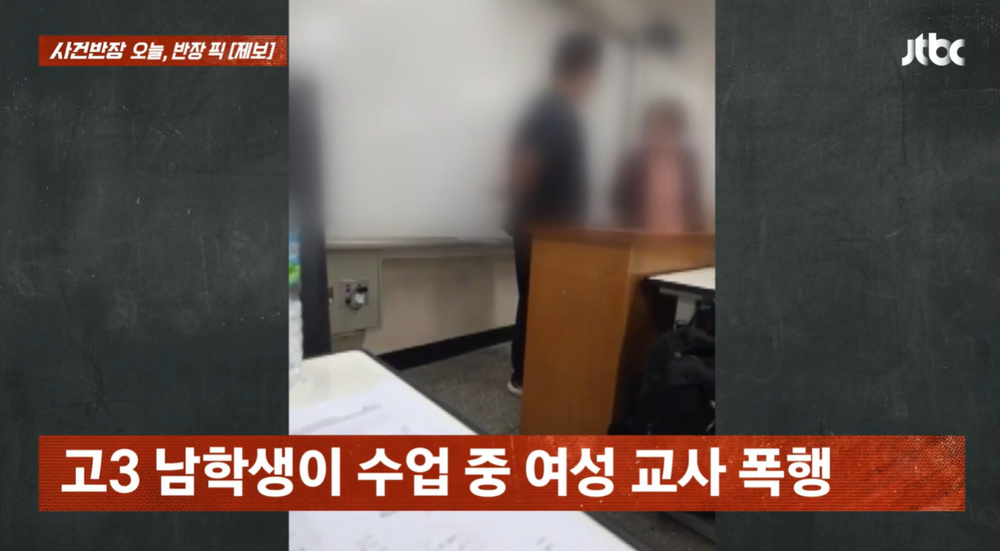 사진=JTBC‘사건반장’캡처사진=JTBC‘사건반장’캡처[뉴스엔이하나기자]서울의한고등학교에서수업중남학생이여교사를폭행하는사건이벌어졌다.지난4월10일방송된JTBC‘사건반장’에서는고3남학생이수업중여고사를폭행하는사건영상이공개됐다.지난10일서울양천구신정동의한고등학교에서는교사와대화를하던고3남학생이갑자기교탁을내리치고바구니를집어던진뒤휴대전화를쥔손으로여성교사의얼굴을가격했다.폭행을당한교사는오른뺨을부여잡았고,다른학생이나와폭행한학생을만류했다.학생은휴대전화를게임을하다가교사가이를지적하자실랑이를벌이다가폭력행사한것으로알려졌다.교육청은교사와학생을분리조치하고사실관계를파악중이다.학교측은가해학생에대해서지역교권보호위원회절차에따라처리할예정이다.‘사건반장’제작진은해당고등학교교감과통화했다.정확한상황을파악중이라는교감은학생이상당히흥분한상태라부모님께인계했으며,조사후에교육청에보고할예정이라고밝혔다.이와함께학생에대해서는매뉴얼대로진행예정이며,통신기기압수때문이아닌수행평가과정에서성실하게임하지않은태도를지적했다가벌어진일이라고설명했다.뉴스엔이하나bliss21@기사제보및보도자료[email protected]ⓒ뉴스엔.무단전재&재배포금지Copyright©뉴스엔.무단전재및재배포금지.