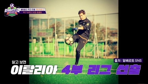 (엑스포츠뉴스황수연기자)방송인알베르토몬디가'뭉쳐야찬다4'에출격해긴장감을높였다.지난6일첫방송된JTBC새예능프로그램'뭉쳐야찬다4'는대한민국예능최초로11대11정식축구리그전'판타지리그'를선보였다.이를위해축구레전드4인안정환,박항서,김남일,이동국이각팀의감독으로나섰고,알베르토몬디는선수로출전해긴장감넘치는순간을선사했다.이날알베르토몬디는등장부터다른출연자들을술렁이게만들었다.이탈리아4부리그선수출신으로뛰어난축구실력을자랑하는알베르토몬디는축구칼럼도쓰는'축박사'로익히알려져있었기때문.진짜고수알베르토몬디의등장에모두가긴장했다.그러나알베르토는겸손한모습을보였고,다른출연자들을탐색하는세심함을보였다.이어알베르토몬디는자신을'이탈리아김민재'로소개했고,"눈이가는사람이있었다"라면서도"제실력에대해자신있으니까아직은견제되는사람은없다.선수출신은다르다"고자신감을드러냈다.이후알베르토몬디는박항서,안정환,김남일,이동국으로꾸려진비현실적인감독라인업을보고"멋있다"며감탄했다.또알베르토몬디는선수드래프트가시작되자긴장감을드러냈다.다양한스펙을지닌출연자들이저마다의개성을드러낸가운데알베르토몬디가드래프트테스트에서어떤모습을보여줄지,다음주방송에서의활약에기대가모아졌다.한편,알베르토몬디는현재다양한콘텐츠를통해팬들과소통하고있다.JTBC'뭉쳐야찬다4'는매주일요일오후7시10분에방송된다.사진=JTBC황수연기자[email protected]©엑스포츠뉴스.무단전재및재배포금지.