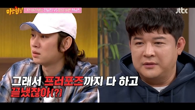 JTBC‘아는형님’캡처JTBC‘아는형님’캡처[뉴스엔서유나기자]슈퍼주니어신동이김희철의과거연애사폭로에발끈했다.4월5일방송된JTBC예능'아는형님'(이하'아형')476회에는조혜련,풍자,랄랄,박제니가게스트로출연했다.이날신동과강호동은조혜련과콩트에도전했다.강호동은나만바라보는전남친,신동은친구가너무많아데이트하기힘든현남친역할을맡았다.현남친역할에몰입한신동은조혜련이"날너무안챙긴다"며"솔직히다른여자있지?"라고묻자"난정말바람이라는걸피워본적없다.사랑은너뿐"이라고해명했다.또"난세상에사랑만있다고행복하지는않을것같다.사랑에걸맞은일자리도있어야하고우정들도있어야더사랑이빛난다고생각한다"고가치관을전했다.이말을뒤에서듣던김희철은"쟤는진짜저렇다.그래서프러포즈까지다하고끝냈잖아.진짜신동이는일이중요하다"고폭로해신동을당황시켰다.앞서공개프러포즈와상견례를한여자친구와결별한적있는신동은"미친XX아냐저거?그얘기를지금왜해!"라고김희철을향해발끈해웃음을자아냈다.한편신동은지난2010년두번의공개프러포즈를했다.슈퍼주니어4집앨범'땡스투(Thanksto)'란에그는전여자친구의이름을언급하며"우리결혼하자,청혼하는거야,사랑해줄게,영원히"라고프러포즈했다.또예능'강심장'에출연해서는"가진게많은것도아니고나이가많은것도아니고많이유명한연예인도아니지만결혼하고싶다.다음주에상견례를하기로했다"고털어놓았고,이후신동의소속사SM엔터테인먼트는"상견례는양가부모님의시간이맞지않아아직하지못했고,두사람모두어려서당장결혼을한다기보다결혼을전제로정식교제를허락받고싶어자리를마련했던것"이라고밝혔다.뉴스엔서유나stranger77@기사제보및보도자료[email protected]ⓒ뉴스엔.무단전재&재배포금지Copyright©뉴스엔.무단전재및재배포금지.