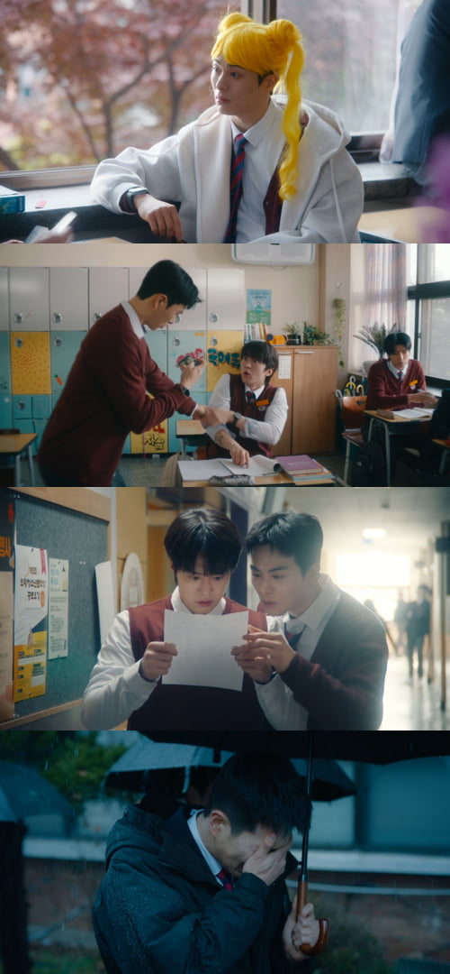 [텐아시아=류예지기자][사진=티빙(TVING)]정건주가공명과의찐친케미를선보였다.지난3일공개된티빙오리지널시리즈‘내가죽기일주일전’(제작CJENM·스튜디오몬도,제공티빙)1,2화에서정건주가람우(공명분)의절친이자유일무이한보드게임파트너‘이홍석’으로등장해시선을사로잡았다.홍석은다른반이되었지만,여전히친구가없는람우를위해쉬는시간마다함께보드게임을해주며그를살뜰히챙겼다.또람우가일진들을위협하기위해팔에그린환경보호문신을발견하고이를놀리기위해사진촬영을하는가하면,희완(김민하분)이람우의이름으로도서관에불건전한도서를구매해달라고한사실을알고신청반려목록을큰소리로외치는장난스러운모습으로웃음을자아냈다.그런홍석이2화말미람우의운구차를따라가며눈물흘리는장면은안타까움을안겼다.이에웃음만가득했던이들사이에어떤일이벌어졌던것인지앞으로의이야기에궁금증을높였다.정건주는만우절에세일러문가발을쓰고보드게임을하는밝고능청스러운고등학생이홍석을완벽하게소화해내며시청자들의이목을집중시켰다.홍석그자체가된정건주는둘도없는친구인공명과의유쾌한브로맨스를뽐내며보는이들을미소짓게만들었다.현실에서볼법한남사친의모습으로시청자들의곁에온정건주,그의계속되는활약에기대를모은다.한편,정건주가출연하는‘내가죽기일주일전’은매주목요일오후12시티빙에서공개된다.류예지텐아시아기자[email protected]©텐아시아.무단전재및재배포금지.