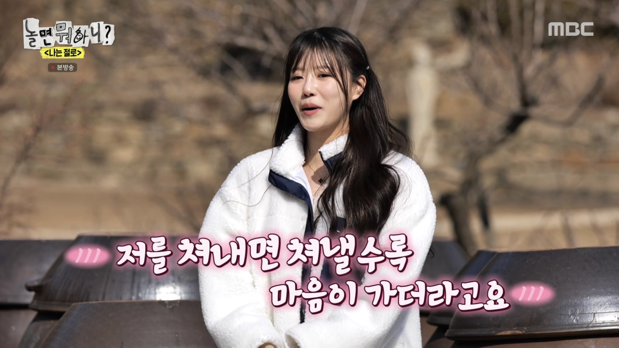(엑스포츠뉴스임나빈기자)이미주가자신의이상형을밝히며,이이경에게호감을간접적으로표현했다.15일방송된MBC'놀면뭐하니?'(이하'놀뭐')271회에서는절에서열리는만남템플스테이'나는절로'를각자의방식으로즐기는멤버들의모습이그려졌다.이날이미주는'나는절로'설명을듣고,"유부남멤버들은어떻게하냐"며궁금해했다.유재석은"나랑,KCM,하하는템플스테이느낌으로갈거다"라고답했다.그러자하하가"우리를좋아할수도있지않냐"라고근거없는자신감을내비치며웃음을자아냈다.유재석은기가차하며"유부남셋만템플스테이하고,나머지는'나는절로'해라"고정리했다.이어본격적인'나는절로'자기소개타임이펼쳐졌다.이미주는자신을옥순이라소개하며,"올해31세됐다.가장중요한건성격이라고생각한다"고밝혔다.또"한식위주로요리를좀한다.김치찌개,된장찌개다한다"고어필했다.이이경이"여기서마음에드는사람이몇명정도있냐"고묻자,이미주는"두분정도계신다"고답했다.이를들은주우재와허경환이서로"나봤다"고주장하며웃음을안겼다.반면에이이경은"아이고저런"이라며심드렁해했다.그런가하면이미주는"저는저를쳐내면쳐낼수록마음이가더라"고했고,이에유재석은이이경을유추했다.다음으로박진주는"개그코드가맞아야된다.그리고저랑반대되는사람을좋아한다.머리는차갑고몸은뜨거운사람"이라고자신의이상형을설명했다.이에주우재가"병원가야하는거아니냐",허경환은"밖에머리내놓고자는사람"이라고반응하며폭소를안겼다.허경환은본업으로방송,부업으로치킨장사를하고있다고전했다.재산보유현황에대해서는"분할돼있다.찾으려면힘드실거다"라고얘기해실소를유발했다.KCM이"오늘만나면재산줄수있냐"고묻자,허경환이"돈보고저를만나냐"고받아치며유쾌한분위기를이어갔다.사진=MBC방송화면임나빈기자[email protected]©엑스포츠뉴스.무단전재및재배포금지.