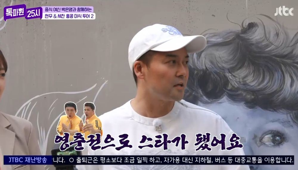 [TV리포트=이혜미기자]방송인전현무와양세찬이홍콩에서'한류스타'로대접을받았다.27일JTBC'톡파원25시'에선전현무와양세찬,박은영셰프의홍콩미식투어가펼쳐졌다.이날세남녀는영화'중경삼림'의촬영지이자홍콩의대표관광명소로잘알려진미드레벨에스컬레이터를찾았다.미드레벨에스컬레이터는세계에서가장긴실외에스컬레이터로거주민들의편의를위해무려20개의에스컬레이터를연결해만들었다고.이날'중경삼림'속왕페이로분한박셰프가영화속한장면처럼포즈를취하자양세찬은그런박셰프의모습을카메라에담으며촬영혼을불태웠다.이어공개된결과물에출연자들은"느낌있다.잘찍는다"며입을모았다.이날왕페이와양조위가걸었던길을지나소호거리에도착한이들은여느한류스타못지않은인기를누렸다.벽화앞에선이들을관광객들이촬영하고나선것.이에전현무는"우리가홍콩에서영춘권으로스타가됐다.자고일어나니스타가됐다"며너스레를떨었다.홍콩여행에있어먹방도빠질수없는것.이날유명디저트가게를찾은세남녀는찹쌀경단에따뜻한생강차를곁들인'생강탕원'과'망고사고'를맛봤다.지독한냄새를풍기는두리안&찰흑미빙수에이르러전현무는질색한반응을보였으나박셰프는"너무맛있다"라고극찬했다.이에용기를낸전현무는두리안빙수를한입먹고는"냄새가코를찌르는데입에넣으면괜찮다.끝맛이좋다"라고평했다.이혜미기자[email protected]/사진='톡파원25시'방송화면캡처Copyright©TV리포트.무단전재및재배포금지