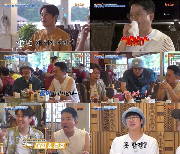 개그맨김대희와김준호,홍인규가넘치는흥을주체하지못하며토요일밤을웃음으로물들였다.김대희와김준호,홍인규는25일(어제)방송된‘니돈내산독박투어3’(채널S,SK브로드밴드,K·star,AXN공동제작)에서유세윤,장동민과함께웃음으로꽉찬말레이시아코타키나발루여행을이어갔다.이날방송에서독박즈는수상리조트테라스앞바다에서물놀이를한껏즐긴뒤식당으로이동했다.김준호는먹식이모드를발동해주문을척척했고,럭셔리한레스토랑분위기에맞게고급스러운말투로무드를맞춰나갔다.그가운데홍인규는“워터프리?”를외쳐분위기를깬다며멤버들의질책을받아웃음을샀다.개그맨김대희와김준호,홍인규가넘치는흥을주체하지못하며토요일밤을웃음으로물들였다.숙소로돌아온이들은‘독박투어’시즌3사상최고로비싼약150만원숙소비용을걸고희대의대결을펼쳤다.문제출제자로나선김준호는차진진행으로게임의긴장감을최고조로끌어올렸다.홍인규는오로지같은팀장동민에게의지해답을맞혀독박에서벗어날수있었지만,답을맞히기위해온갖촉을발동한김대희는마지막대결에서독박에걸리며극강의분노를표출했다.씨워킹을하러간이들은각자의방식대로즐겼다.김대희는과거사고로인한물공포증으로한껏긴장했지만바닷속에들어가자금세잊고즐기는모습을보였다.씨워킹비용을두고진행된게임은본인이셀렉한굼벵이가마지막까지접시위에있으면독박에걸리는방식이었다.게임이시작되자세사람은자신의굼벵이이름을있는힘껏외치는가하면,과열된열기속소리를지르며게임에몰입했다.결국김준호는이번여행의최다독박자가되었고굼벵이시식을하게됐다.기겁했던김준호는조금씹어먹더니이내“맛있어”라며독박즈들을놀라게했다.그럼에도옆에있던김대희는김준호를놀리듯빵빵터지며연신폭소를터트렸다.이처럼김대희와김준호,홍인규는다채로운리액션은물론눈앞에펼쳐진상황에완전몰입하며현장을유쾌하게물들였다.만능예능꾼김대희와김준호,홍인규의활약은매주토요일저녁8시20분방송되는채널S,K·star,AXN‘니돈내산독박투어3’에서만나볼수있다.[금빛나MK스포츠기자][ⓒMK스포츠,무단전재및재배포금지]Copyright©MK스포츠.무단전재및재배포금지.