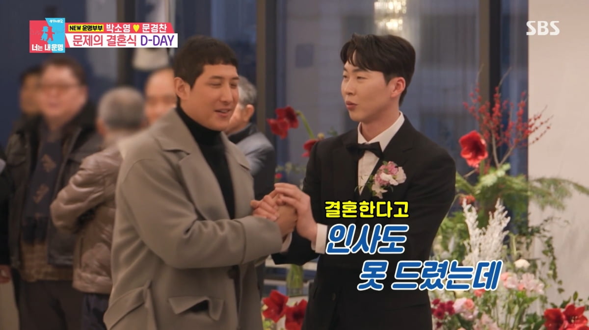 방송화면캡쳐[OSEN=김예솔기자]박소영과문경찬이부부가됐다.13일방송된SBS'동상이몽시즌2너는내운명'에서는박소영,문경찬부부의결혼식현장이공개됐다.이날박소영,문경찬의결혼식에서가수싸이가축가를한다고나와주위를깜짝놀라게했다.하지만알고보니코미디언수지가싸이로변신해등장해주위를폭소케했다.이에박소영역시수지와춤을맞춰눈길을끌었다.박소영은"경찬씨를많이웃게해주고싶다.노래가내가전하고싶은메시지"라고말했다.방송화면캡쳐문경찬은결혼식에서이벤트로푸쉬업을하며애정을드러냈다.하지만이모습을본박소영은푸쉬업하고있는남편에게앉고미소를보여주위를폭소케했다.급기야김대희와김준호는"그만해도된다"라고외쳤고박소영은"계속해!할수있어!"라고말해주위를폭소케했다.김준호는박소영을보며"오늘신혼여행안가냐"라고물었고박소영은"내일모레간다.그때허리가복구된다"라고말해웃음을자아냈다.방송화면캡쳐박소영은"민경언니가남자친구가없으니까안타깝다.언니는운동하는분들과만나면좋을것같다"라며"운동하는분들중에서언니에게관심있는분들은연락달라.서장훈오빠도괜찮은분있으면말해달라"라고말했다.이에서장훈은"제주위분들은거의다가정이있다"라고말해주위를폭소케했다.방송화면캡쳐이날동료가수안소미의노래에결혼식2부가시작됐다.박소영과문경찬이환복후재등장했다.박소영은"너무너무감사하다.잘사는모습으로보답하겠다"라고인사했다.김민경은두사람을보며"이제내결혼만남았나"라고말했다.이에오나미는"결혼만해봐라.1박2일합숙들어간다"라고말해웃음을자아냈다.방송화면캡쳐박소영은"경찬씨의아내로서새로운삶을시작한다"라며"경찬씨가힘든순간도올거다.그런순간이온다면경찬씨가나한테기댈수있게어깨운동을많이할거다"라고말했다.문경찬은"영원히도망가지않고가정을위해살겠다"라고말했다./[email protected]©OSEN.무단전재및재배포금지.