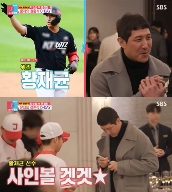 사진=SBS‘동상이몽2-너는내운명’방송캡처가수겸배우지연과이혼한야구선수황재균이박소영,문경찬의결혼식장에서포착됐다.13일방송된SBS예능프로그램‘동상이몽2-너는내운명’(이하‘동상이몽2’)에서는개그우먼박소영,야구선수문경찬부부의결혼식현장이그려졌다.이날결혼식장은신부박소영의지인으로북적였다.개그맨김민경,오나미를비롯해김준호,김대희,김준형-김지혜부부,슬리피,강재준-이은형부부,송해나,유민상등이줄줄이등장하며박소영의결혼을축하했다.반면신랑측은한산했다.문경찬은“보통12월에(야구관계자들이)결혼식을많이한다.비시즌,비활동기간이라서그렇다.이날도기아타이거즈김주찬코치등세명이결혼했다”며초조한마음을드러냈다.문경찬의걱정이극에달할무렵야구선수박정수,홍건희,현도훈,류진욱,김영규,이정훈,이호연,정성종등동료들이하나둘모습을드러냈다.그중가장눈길을끈건황재균이었다.지연과이혼후오랜만에모습을드러낸황재균은문경찬에게축하인사를건넸고,문경찬은“저는그때인사도못드렸는데와주셔서감사하다”고말했다.황재균은또결혼식에앞서로비에서만난한소년야구팬이야구공을건네며사인을요청하자흔쾌히응하는훈훈한장면을연출하기도했다.장주연기자[email protected]©일간스포츠.무단전재및재배포금지.