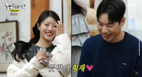 MBC예능프로그램‘놀면뭐하니?’에서또한번멤버들의케미가빛났다.특히이미주와송건희사이에형성된은근한러브라인이시청자들의눈길을사로잡았다.25일방송된‘놀면뭐하니?’에서는‘윈터송프로젝트’멤버들의단합을위해준비된특별MT가공개됐다.녹화와방송이몇차례미뤄지며멤버들간의교류가부족했던만큼,이번MT는친분을쌓는데중점을둔자리였다.“방어회로시작된팀워크”‘놀면뭐하니?’에서또한번멤버들의케미가빛났다.사진=MBC‘놀면뭐하니?’캡처모두가한자리에모여즐긴방어회는KCM이직접공수해온특별한메뉴였다.KCM은“서로어색한분위기를깨고친해지기위해특별히준비했다”고전했다.이에멤버들은삼삼오오모여앉아즐거운시간을가졌다.특히,이날송건희옆자리로향한이미주의모습이큰화제를모았다.승헌쓰가이미주에게자리를내주며배려심을발휘하자,이미주는쑥스러운미소를지으며자연스럽게송건희옆자리에앉았다.“교묘하게옆으로갔네”유재석의폭소이를본유재석은놓칠리없었다.그는“미주야,교묘하게건희옆으로가는거아니야?”라며장난섞인한마디를던져촬영장을웃음바다로만들었다.이에이미주는“승헌쓰가살짝밀어줬다.고맙다고얘기하고싶다”며속마음을밝혀현장에설렘과웃음을더했다.이날방송이후,이미주와송건희의러브라인은시청자들사이에서도큰화제가됐다.네티즌들은“둘이진짜잘어울린다”,“미주의독특한매력이송건희를설레게했을듯”등다양한반응을보이며열띤반응을이어가고있다.이미주는이번‘놀면뭐하니?’방송을통해특유의유쾌한캐릭터와설레는러브라인까지선보이며예능감을한층더업그레이드했다.사진=MBC‘놀면뭐하니?’캡처‘윈터송프로젝트’멤버들의단합을위해준비된특별MT가공개됐다.사진=MBC‘놀면뭐하니?’캡처한편,이미주는최근축구선수송범근과결별하며화제를모았다.두사람은한때SNS에서로의여행사진을게재하며열애를암시했으나,얼마전이사진들을모두삭제하며결별을암묵적으로인정했다.이에대해소속사안테나는“아티스트사생활이라확인이어렵다”는입장을밝혔다.결별후에도밝은모습을보여준이미주는이번방송을통해새로운러브라인가능성을암시하며시청자들의응원을받고있다.과연이관계가단순한방송용케미로끝날지,아니면실제감정으로발전할지에대한궁금증이커지고있다.“러브라인과예능감까지다잡은이미주”이미주는이번‘놀면뭐하니?’방송을통해특유의유쾌한캐릭터와설레는러브라인까지선보이며예능감을한층더업그레이드했다.송건희와의은근한케미,유재석의유머러스한멘트까지어우러지며또한번레전드장면을만들어낸이번방송은시청자들에게깊은인상을남겼다.[김승혜MK스포츠기자][ⓒMK스포츠,무단전재및재배포금지]Copyright©MK스포츠.무단전재및재배포금지.