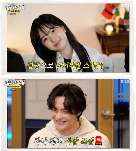 [OSEN=연휘선기자]‘놀면뭐하니?’에서걸그룹엔믹스멤버해원과배우송건희가비상시국으로인한잦은결방으로인해단체녹음에함께하지못해안타까움을자아냈다.25일방송된MBC예능프로그램‘놀면뭐하니?’(약칭놀뭐)에서는지난주에이어윈터송MT뒷이야기가그려졌다.윈터송'버터플라이'와'흰수염고래'최종녹음의순간.앞서MT에못왔던펜싱선수오상욱까지참석했다.그러나여전히빈자리가있었다.바로엔믹스해원과송건희였다.먼저엔믹스해원의잦은결방으로인해조정된단체녹음일정에함께할수없었다.실제'놀면뭐하니?'의경우지난달초윤석열대통령의비상계엄사태직후부터결방직격탄을맞았다.결방,탄핵투표,심지어제주항공여객기참사로인한애도기간결방이이어졌다.당장지난주방송되던‘놀면뭐하니?’는윤석열대통령의구속으로인해방송도중중단됐다.헌정사상최초로현직대통령이구속되는일이발생하며뉴스속보가편성되며미처방송하지못한윈터송MT뒷이야기를당초계획된연말이아닌연초프로젝트로선보이게된것이다.이에엔믹스해원이먼저예정된스케줄을소화하고자단체녹화에불참,개별녹음을진행하게됐다.그런가하면송건희는갑작스러운독감에걸려불참했다.이에박진주와이미주가순간발끈해“왜독감걸려!”라고소리쳤으나,이내“괜찮아?”라고걱정해웃음을더했다.결방이아니라면단체샷까지함께했을엔미스해원과송건희를향해윈터송프로젝트멤버들의안타까움이이어졌다.다행히엔믹스해원과송건희는따로개인녹음을진행해함께하기로해의미를더했다./[email protected][사진]MBC제공.Copyright©OSEN.무단전재및재배포금지.