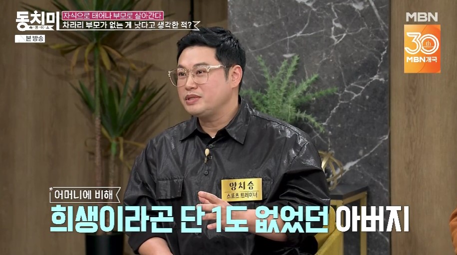 (엑스포츠뉴스장인영기자)'동치미'양치승이안타까운가정사를전했다.1일방송된MBN'속풀이쇼동치미'(이하'동치미')에는트레이너양치승이출연했다.이날양치승은어렸을적고아가되길바랐다고밝혀눈길을끌었다.양치승은"아버지의폭력성이심해서이런생각하면안되지만어렸을때내가고아였으면좋겠다고생각했다"며"집이감옥처럼느껴졌다.아버지의폭력성때문에온가족이너무힘들었고매일맞고이러니까차라리고아가더낫지않았을까이런생각을했다"고털어놨다.이어서"어머니는가족을위해희생했어도아버지는아니었다.아버지가퇴직금을받으셨는데아들이사업도하고어머니도평생고생하셨으니까가족을위해쓸법도한데모두주식에투자했다.1년도안돼서날렸다"고고백했다.그는"어느날아침에어머니께전화가왔는데이상한느낌이들더라.엄마가평소에전화를안한다"며"아버지가돌아가셨다고하더라.그때제마음이어땠냐면,만감이교차하는데사실되게많이편안했다.너무죄송하지만.왜내가마음이편하지?한동안죄책감에시달리기도했다"고이야기했다.사진=MBN방송화면장인영기자[email protected]©엑스포츠뉴스.무단전재및재배포금지.