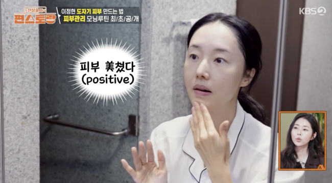 KBS2TV'신상출시편스토랑'방송캡처(엑스포츠뉴스김지영기자)가수겸배우이정현이19년째사용중인괄사아이템을공개해눈길을끌었다.6일방송된KBS2TV'신상출시편스토랑'(이하'편스토랑')에서는이정현의일상이공개됐다.기상직후에도뽀얀피부가돋보이는이정현에김준현은"콧구멍말고는구멍이없다"며이정현의피부를극찬했다.이후이정현은아기용크림을바른뒤,집안에서도선크림을꼼꼼히바르는모습을보였다.그는"아침에일어나자마자목까지선크림을꼭바른다"며"얼굴과목의톤차이가나기때문에반드시목까지발라야한다"고강조했다.세안후에는귤껍질을우려낸진피차를마시며아침루틴을이어갔다.그러던중찻잔을얼굴에비비는모습이포착돼MC들을놀라게했다.KBS2TV'신상출시편스토랑'방송캡처이정현은턱선은물론쇄골까지그릇으로문지르며마사지를이어갔고,이를본MC들은"괄사로쓰시는거냐"며의문을드러냈다.이에이정현은"19살때부터괄사를시작했다.벌써28년째"라며"해외공연갈때마다두꺼운청자찻잔을항상들고다녔다"고밝혔다.이정현은"어떤사람들이왜밥그릇을들고다니냐고물었는데,이만한게없다"며만족감을드러냈다.이후남편이기상하자이정현은차를건네며티타임을가졌다.남편의얼굴을보던이정현은"최근에살을빼서보기좋다"고칭찬했고,남편은"바지사기돈아까워서뺐다"고답해웃음을자아냈다.KBS2TV'신상출시편스토랑'방송캡처곧이어이정현은남편의얼굴을살펴보며"쳐졌다"고말한뒤,앞서사용한도자기찻잔으로얼굴마사지를시작했다.표정이일그러지면서고통을느끼는남편의모습에엠씨들또한당황한모습을보였다.이후이정현은"신혼때한번해줬는데기억나냐"고호통을쳤다.이에의사인이정현의남편은"근육에자극을주면팽창하면서일시적으로올라간다"며"시간이지나면다시돌아오는것"이라고설명했다.이를들은이정현은"그래서어쩌라고.오늘은그럼짝짝이로다녀"라고응수해웃음을자아냈다.한편이정현은지난2019년정형외과의사인남편과결혼해슬하에두딸을두고있다.사진=KBS2TV'신상출시편스토랑'방송캡처김지영기자[email protected]©엑스포츠뉴스.무단전재및재배포금지.