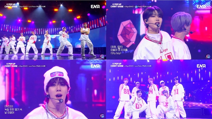 ENA‘케이팝업차트쇼’방송캡처아이돌그룹엔싸인(n.SSign)이뉴트로감성으로무대를장악했다.엔싸인(카즈타,도하,성윤,로빈,한준,로렌스,희원)은지난17일방송된ENA‘케이팝업차트쇼’에출연해세번째미니앨범‘LovePotion(러브포션)’의타이틀곡‘LovePotion(백일몽;白日夢)(러브포션)’무대를선보였다.엔싸인은뉴트로느낌이물씬나는분위기로팬들의마음을사로잡았다.멤버들은90년대향수를느낄수있는힙한스타일링으로개개인의매력을살리면서도화이트색상으로통일감을주며무대위에서탄탄한팀워크를드러냈다.엔싸인은특유의파워풀한매력으로강한임팩트를남겼다.퍼포먼스를극대화하는매혹적인눈빛과섬세한표정연기로그루브를한층살렸고환상적인군무로무대를완벽하게장악했다.중독성넘치는곡의전개와엔싸인의빛나는비주얼,칼군무가어우러지며팬들을열광케했다.‘LovePotion(백일몽;白日夢)(러브포션)’은90년대정통뉴잭스윙을엔싸인만의청량함으로표현한댄스곡이다.블랙뮤직특유의그루브를극대화한트랙과멜로디를통해색다른‘뉴트로’를내세웠다.엔싸인은지난10일KBS2TV‘뮤직뱅크’에서데뷔첫음악방송1위를차지하며뜨거운화제를모았다.엔싸인은앞으로도다양한음악방송을통해활발하게활동하며글로벌팬들과소통할예정이다.손봉석기자[email protected]©스포츠경향.무단전재및재배포금지.