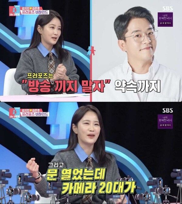 [스포츠한국신영선기자]코미디언김지민이김준호가방송을끼고프러포즈할줄전혀몰랐다고밝혔다.6일방송된SBS'동상이몽2-너는내운명'에서는김준호와결혼을앞둔김지민이스튜디오에출연했다.지난방송에서김준호에게프러포즈를받은김지민은"(방송에서)하도얘기를많이하고다녀서프러포즈만큼은방송을끼지말자고철석같이약속했다.그래서당연히안할줄알고그날건강검진하고건강식먹으러가자고해서전혀예상을못했다"고비하인드를전했다.그는"회사에도착하자마자화살표가있더라.설마약속을깨겠어?프러포즈는절대아닐거라고생각하고문을열었는데카메라가20대가있더라"고밝혔다.이어"정리를하고둘이저녁을먹으러갔는데'일단너무고마워'얘기를하다가'솔찬히놀랐다'고했더니미안하다더라.프러포즈를하고미안하다고말하게만든제가너무미안하고짠했다"고털어놨다.이에이지혜,이현이는김지민을향해"너무착해"라며놀랐고,김숙은"찐사랑이구나"라고말했다.김지민은올림픽경기장에서결혼식을올린다는얘기에대해"하객1000명이상을수용할수있는데가없더라"고설명했다.스포츠한국신영선기자[email protected]©스포츠한국.무단전재및재배포금지.