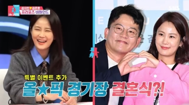 SBS'동상이몽시즌2-너는내운명'/SBS'동상이몽시즌2-너는내운명'방송캡처[마이데일리=강다윤기자]코미디언김지민이김준호와'주경기장'결혼식설을해명했다.6일방송된SBS'동상이몽시즌2-너는내운명'에서는코미디언김지민과박소영이게스트로출연했다.SBS'동상이몽시즌2-너는내운명'/SBS'동상이몽시즌2-너는내운명'방송캡처이날김지민은김준호의프러포즈비하인드를전했다.철썩같이약속했지만'방송을낀'프러포즈에놀랐음을털어놓자,김준호가"미안하다"고했다는것.이와함께"그순간프러포즈를하고미안하게만든내가너무미안하고되게짠하더라"라고말해감동을자아냈다.그러자MC김구라는"김준호씨가이렇게감동적인건별개로성향상이건또놓칠수없을거다"며"김지민과김준호가)결혼식을올림픽주경기장에서한다는말이있다"고말해놀라움을자아냈다.그러면서"난재혼을이렇게성대하게하는사람처음봤다"고말해스튜디오를폭소케했다.김지민은초혼이지만김준호는2006년결혼해2018년이혼한돌싱남이다.이에김지민은"사실우리가(예상하객)인원을합치다보니1000명이상을수용할수있는곳이없더라"며남다른인맥을자랑,출연진들을또한번놀라게했다.Copyright©마이데일리.무단전재및재배포금지.