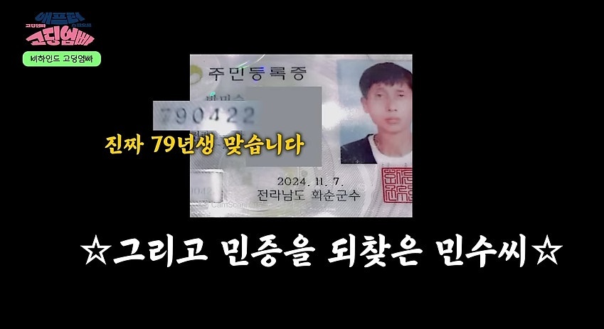 사진=MBN‘고딩엄빠’공식채널캡처사진=MBN‘고딩엄빠’공식채널캡처[뉴스엔이민지기자]'민수오빠'박민수씨가신분증을공개했다.MBN'고딩엄빠'측은1월2일공식채널에'"나지금민수오빠처럼서성이고있음"에민수오빠aka남사할모셨습니다'라는제목의영상을게재했다.시즌5에출연했던정환희이성만부부와정환희의남사친(남자사람친구)박민수씨의근황을담은인터뷰영상이다.박민수씨는'고딩엄빠5'방송당시노안외모로'남사친'이아닌'남사할(남자사람할아버지)'라는별명을얻은바있다.정환희씨는"고딩엄빠에서는계속누워만있었고무기력증,우울증이와있었던상태인데지금은이겨내기위해나가려고하고청소도한다.길거리에서사람들이알아보더라"고근황을공개했다.박민수씨는"악플을많이받아서힘든점도많고좋은점이하나있다면누군가날알아봐준다는게진짜재밌다.그렇게바라서는안되는데은근히스타성이좀있다"며미소지었다.그는"귀농생활하고있고친구따라다니며일도하고있다"고밝혔다.정환희씨를'토끼'라는애칭으로불렀던박민수씨는"사람들은이상하게볼지몰라도처음만났을때등에토끼가그려진옷을입고다녔다"고말했다.이성만씨반응에대해"처음엔조금이상하게생각했을지몰라도이제는적응돼이해하고맨날만나니까"라고덧붙였다.정환희씨는"요즘에도싸우고남사친과연락하냐"는질문에"예전에는남편과싸우면오빠들한테전화했는데민수오빠외에는안한다"며"방송에서는둘이만나게됐지따로만나서술먹고그러지않는다"고강조했다.박민수씨역시"둘이같이먹은적은별로없다.성만이형이랑같이보고같이밥먹고술먹고사이좋다"고말했다.정환희씨는"(박민수씨가)예전엔자주놀러왔는데지금은민수오빠도남편눈치보고나도남편눈치봐서그렇게집에자주놀러오지않는다"고말했다.정환희씨는박민수씨와의만남에대해"열아홉살때남자친구랑민수오빠가친해서알게된상태였다.제대로친해진건스무살때다"고말했고박민수씨는"남들은이해할지모르겠지만여자로서호감이1%도없고친동생으로지내고있다"고밝혔다.노안으로화제를모은박민수씨는"79년생4월22일양띠다.죄송하다.늙어보여서"라며신분증을인증했다.그는"몸도아픈적도있었고힘든일도많이해서그렇다"고설명했다.뉴스엔이민지oing@기사제보및보도자료[email protected]ⓒ뉴스엔.무단전재&재배포금지Copyright©뉴스엔.무단전재및재배포금지.