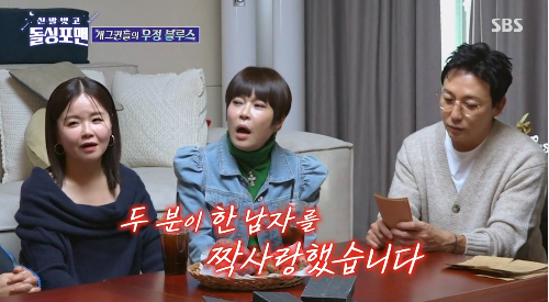 조혜련과김효진이과거서경석을동시에짝사랑했던사실을고백하며큰화제를모았다.두사람은서울대출신서경석의지적매력에끌렸던당시를솔직하게회상해웃음을자아냈다.14일방송된SBS예능프로그램신발벗고돌싱포맨에서는조혜련,김지선,김효진,정가은이출연해솔직한입담과유쾌한에피소드를선보였다.이날방송에서조혜련과김효진이과거서경석을짝사랑했던비화를털어놔시청자들의관심을끌었다.조혜련은탁재훈과의관계를회상하며“옛날에탁재훈과많이놀았다.방송이아니라따로놀기도했다”고솔직하게밝혔다.이어“근데다들탁재훈한번씩좋아한적없냐.매력이많다”고말하며특유의유머감각을발휘했다.하지만그는탁재훈에대해“심쿵하게할때도많은데너무가벼워서오래는안간다”고덧붙여웃음을자아냈다.서경석짝사랑비화…“서울대매력이컸다”이날의하이라이트는조혜련과김효진이동시에서경석을짝사랑했던과거를회상한장면이었다.김효진은“공개적으로도이야기했지만서경석을이성적으로좋아했었다”고고백했다.이에조혜련도“우리둘다외모를좋아한게아니다”라며짝사랑이유를설명했다.김효진은“서울대출신이라는점이가장컸다.지적허영심이있으니까고학력자에게끌렸다”고말했다.또한“그때서경석이대진운이좋았다.박명수,김현철같은분들과활동했는데서경석이더돋보이고점잖아보였다.그게참멋있었다”고당시를회상했다.조혜련역시“그당시에서경석에게직접고백하지는못했다.대신이윤석에게전해달라고했는데결국전해지지않았다”고말해폭소를유발했다.김효진,조혜련의특별한에피소드…“알몸운동에당황”또한김효진은조혜련과함께여행을갔던에피소드를언급하며“조혜련이‘태보다이어트’로엄청나게인기있었을때다.2탄을준비하며여행중에방을같이썼는데,실오라기하나걸치지않고운동을하더라”고폭로했다.이어“눈을어디에둬야할지몰라당황했다”고말해모두를폭소케했다.조혜련은이에대해“운동에집중하려면옷이거추장스러울때가있다”며유쾌하게맞받아쳤다.이날방송은네명의게스트가등장해서로의과거를폭로하고,짝사랑부터다이어트에피소드까지솔직한이야기를털어놓으며큰웃음을선사했다.특히조혜련과김효진의서경석짝사랑비화는그들의솔직한매력을보여주며화제를모았다.한편,신발벗고돌싱포맨은매주화요일오후10시에방송된다.[김승혜MK스포츠기자][ⓒMK스포츠,무단전재및재배포금지]Copyright©MK스포츠.무단전재및재배포금지.