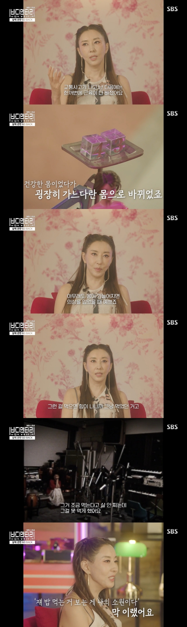 SBS스페셜‘바디멘터리살에관한고백’캡처SBS스페셜‘바디멘터리살에관한고백’캡처소유가극단적인다이어트방법을말했다.12월29일방송된SBS스페셜‘바디멘터리살에관한고백’에서는씨스타소유가다이어트를고백했다.소유는씨스타데뷔전다이어트에대해“단게너무먹고싶었다.미니약과에빠져있었다.너무먹고싶어서화장실에숨어서먹다가걸렸다.누구는도망가고누구는굳어있고누구는입안에넣어버렸다”고말했다.이어소유는“길거리에서기절한적이있다.모르는분이저를병원에데려다주셨다.주사를맞아야하는데수액을맞으면몸무게가늘것같다는생각을먼저했다.수액이몸에들어가면체중이불것같았다.그렇게빼고데뷔를했다.행복했다.데뷔했으니까.사랑을많이받아서우와신기하다.엄청바빴다.광고도많이찍고.행사도많았다”고말했다.그렇게데뷔후제지하는사람이없어지며원하는메뉴를시키다보니어느순간체중이확불어났다고.소유는“‘가식걸’때말랐는데‘니까짓게’최고조로쪘다.처음에는조금부어보인다하다가살이찐것같다고.연예인치고는완전.56kg였다”고말했다.회사에서도큰일났다는반응에다시다이어트가시작됐고“메추리알4개를노른자빼고먹었다.그게거의식사의다였다.친구집에놀러가니수박을썰어주셨는데친구들은한조각은먹어도된다고하는데안된다고.못먹고울었다.한달만에8kg감량했다”고고백했다.(사진=SBS스페셜‘바디멘터리살에관한고백’캡처)[뉴스엔유경상기자]뉴스엔유경상yooks@기사제보및보도자료[email protected]ⓒ뉴스엔.무단전재&재배포금지Copyright©뉴스엔.무단전재및재배포금지.