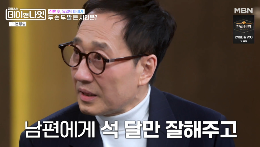 가수유열(엑스포츠뉴스명희숙기자)가수유열이결혼에피소드를공개했다.24일방송된MBN‘김주하의데이앤나잇’9회에서는유열이게스트로출연해폐섬유증투병후7년만의근황을전했다.유열은15세연하아내와늦은나이에연애하며서울과부산을오가는장거리만남을가졌다고.그는"벚꽃구경하러내려갈거다.깜짝선물이있으니공항으로나와서준비하고있어라"고했고,어머니와함께부산에내려갔다고했다.그는"아내가연애할때3대대가족이함께살았다.할머니가아내더러'10살차이나는건부모나다름없다'고했다"며"하지만크게반대는안하셨다"고했다.이후유열은아내와결혼후매일어머니집에서삼시세끼를함께했다고.그는"외아들에50여년만에장가를갔다.어머니바로옆집에서살았다"며"아침에문안인사를가고저는방송을하러갔다"고해MC들을놀라게했다.그는"결혼초에는좀돌아보면사람이아니구나싶었다"며"아내가내편이라고생각했는데남의편이라는걸느끼며외로워했다.3개월만잘해주고헤어지려는결심을했다고하더라"라고당시를언급했다.사진=MBN방송화면명희숙기자[email protected]©엑스포츠뉴스.무단전재및재배포금지.
