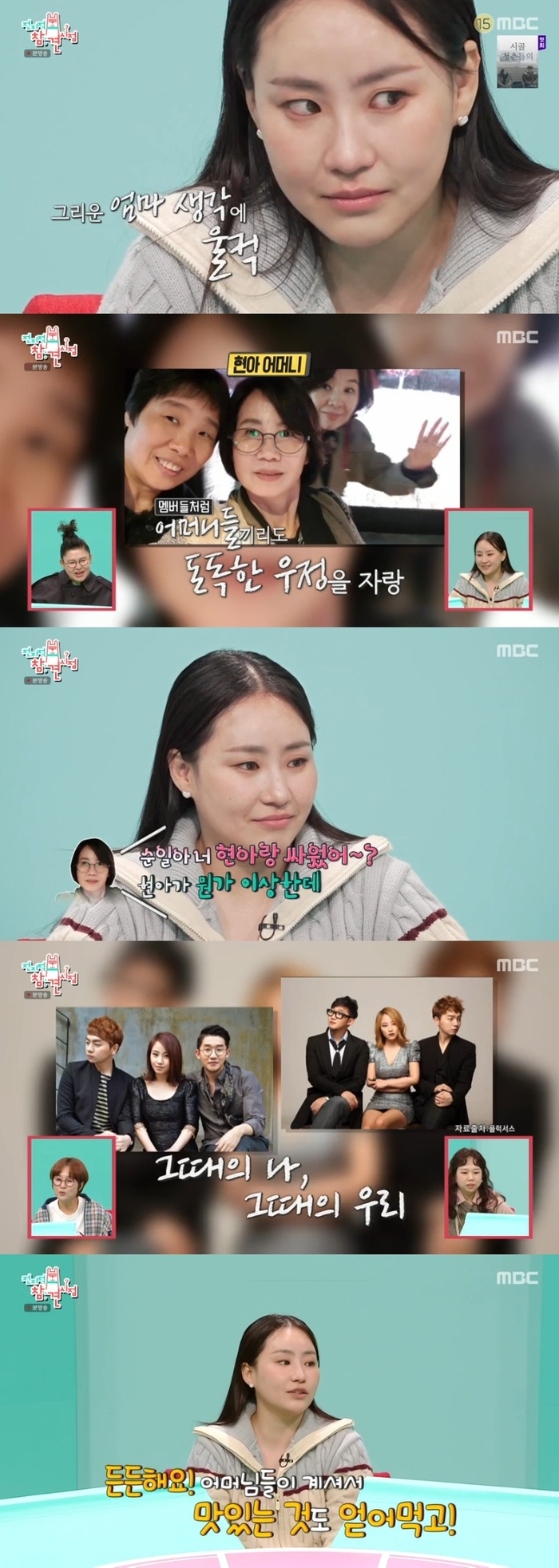 ‘전참시’.사진|MBC조현아가무대를앞두고돌아가신어머니를그리워했다.4일오후방송된MBC예능프로그램‘전지적참견시점’(이하‘전참시’)에는콘서트준비에한창인어반자카파와이영자집을찾은‘전참시’멤버들이모습을보였다.이날방송에서어반자카파는전국콘서트를앞두고모였다.조현아는“컨디션어때?사람들이그얘기가많아.용인이가배가너무나왔다고”라며멤버들의상태를체크,이때멤버들의가족이방문했다.조현아는“순일이오빠들제일좋아하잖아요”라며갑작스럽게오빠호칭을붙였고권순일은“난새우전을좋아하니까새우전!”,조현아는“이건누가만든거예용?”이라며애교를부렸다.용인어머니는“나한테도말을했으면좀해왔을텐데.지금차이나타운에서서예하고있어요.용인이가중학교때부터제생일날맨날미역국끓여줬어요.그런데실험정신이강하다그럴까?미역국에다가고춧가루를...궁금증이많으니까!저번엔떡볶이를하는데귤을넣었어”라며아들용인의속깊은불효를알렸다.조현아는“원래는우리엄마가항상이렇게밥하셨는데...”라며말을잇지못했고“5년됐는데갑자기돌아가셔서...병이굉장히악화됐을때돌아가셨어요.그래서되게든든해요!어머님들이계셔서맛있는밥도얻어먹고!”라며멤버들에게고마움을전했다.순일은“싸우면현아가말을안해요.라디오할때만어쩔수없이말하고그러면현아어머니한테전화가와요.‘순일아너현아랑싸웠어?뭔가이상한데?방에서현아가안나오고...풀어!너희어차피풀거잖아’라고하시고”라며과거를회상했다.이어현아는“아니용인이아버님개그랑순일이어머님하고대화하는것도좋아하셨고!그런데어머님들이도와주시고하니까든든해요!장례식때도든든했어!제가한번씩전화드렸잖아요.근데어머님은아직도계속우셔”라며울컥한모습을보였다.용인은“우리진짜오래됐다!아니야안울어.그런데15년이이게짧은시간이아니야.있었던일들도많고...”라며눈물을훔치기도.15주년콘서트가시작,어반자카파는데뷔곡부터‘널사랑하지않아’를마지막으로완벽한무대를선사했다.조현아는“순일이가이곡을쓰고어깨가이만해졌어요.그런데정말고마워요~1등이죠”라고했다.유병재가“이곡이어느정도예요?저작권료가?”라고단도직입적으로물었고권순일은“9년이지났잖아요.계속많이들어와요.어쨌든제가(강남에)집도샀고...건물까지는없는데”라고답했다.조현아는“그런건욕심없고현금보유자”라며저작권료가본인과비슷하다고밝혀놀라움을자아냈다.또배우고준,오윤아,정지소,김기방,피오등수많은연예인과운동선수가콘서트좌석을메웠고송은이는“현아씨가인맥이넓기로유명하잖아요.수지씨,피오씨랑그런분들이랑은어떻게친해지게된거예요?”라고물었다.조현아는“원래는그분들이처음에저희팬이었어요”라고대답,박용인은“또현아가여대장부스타일이어서여자친구분들이잘따른다”라고밝혔다.‘전참시’.사진|MBC두번째전참시주인공으로는이영자와매니저가등장,이영자매니저는“오늘은유미하우스김장날입니다.배추심는팀에현무,은이,준이포함됐고김장팀에는세형,병재,현희씨가들어있어요”라고소개했다.송팀장에서송실장,송본부장이된매니저는“더열심히하라고회사에서진급시켜주신게아닐까”라며기쁜소식을전하기도.이영자가구운군밤을먹은멤버들은“진짜맛있어”라며감탄했다.이영자는멤버들을위해직접만든웰컴티생강차와닭갈비떡볶이,튀김을가져왔고양세형은“우와행복하다”며맛있게먹기도.식사후이영자의집을본격적으로구경,전현무는“여기가바로이영자냉장고!”,양세형은“무슨박물관에온것같아.볼거리가너무많아!”라며이곳저곳을둘러봤다.집탐방후점점사라져가는비늘김치를만들기로결정,양세형과전현무가무에칼집을냈다.현무는“내옛날별명이절인무였어”라며자랑했고양세형도점점전문적인모습을보이기도.“선배님요리를항상정성이가득담기기때문에전날육수를종일우리셨고요.쉽게공수할수없는재료들로2~3일전부터장도보셨다”라는송성호본부장의말과함께이영자는김칫소를만들었다.이후수육을만들었고특이하게갓버무린겉절이를수육위에올리기도.이영자는“우리집에서먹을수있는걸해주고싶었어.어디서영감을얻었냐면강화도야.김장하고남은배추와게를넣은게국지가유명한데이걸보고새로운걸탄생시킨거야”라며레시피비결을밝혔다.비닐김치를만든후파김치만들기에돌입,파친놈전현무는비닐김칫소를이용해파김치를만들었다.모든요리가끝난후멤버들은갑오징어수육,해물파전을맛봤고유병재는“내가태어나서먹은수육중에제일맛있어”,양세형은“한입씹을때마다안에있는육즙이다터지고쌈장을따로안찍어먹어도간이되어있다”라며감탄했다.폭발적인반응에열심히칼질하다보니텅비어있던냄비가어느새수육한판으로가득찼고이영자는“내가이럴줄알고밥도안쳐놨지”라며솥밥을꺼냈다.특히전현무는“은이누나한테솔직히얘기해줄게.은이누나왔을때도진짜맛있었거든요?그런데오늘이제일맛있어요.누나이게최고라고요”라고속마음을전해웃음을자아냈다.‘전참시’는매주토요일오후11시10분MBC에서방송한다