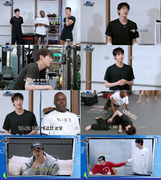 ‘달려라석진’.사진l방탄소년단유튜브캡처그룹방탄소년단(BTS)진이비주얼만큼놀라운기술로프로격투기선수를이기는이변을일으켰다.진은지난17일오후9시방탄소년단유튜브채널에게재된자체예능‘달려라석진’에서방송인조나단과함께이종격투기선수겸방송인김동현과대결을펼쳤다.지난9월방영된‘석진이의위험한초대’에출연한김동현에게격투기내기를해보고싶다고농담처럼이야기했는데두사람의대결이실제로성사된것이다.진은격투기기술로김동현을쓰러뜨려야퇴근할수있다는미션을듣고탈주부터시도했지만막상대결이시작되자뛰어난체력과현란한기술로모두를놀라게했다.또격투기체험후지친상태에서진행된기초체력테스트에서세계랭킹1위복서수준의기록을세웠다.이어예능감넘치는펀치와재치있는온몸승부로김동현에게승리를얻어내함께촬영을한선수들의칭찬이이어졌다.진은힘들어하면서도“생각보다별거아니었다”라며승리를만끽해웃음을안겼다.또한우승상품을선수들에게양보하고마지막까지같이고생한조나단을살뜰히챙겨주변을훈훈하게했다.방송말미에는‘제이홉납치’프로젝트를다루는다음화예고가공개됐다.기상천외한계획을세우며신이난진과연이은서프라이즈에당황하는제이홉은시청자들의기대감을폭발시켰다.지난9월진이팬소통플랫폼위버스라이브방송에서제이홉납치계획을밝힌후제이홉이“진오늘당황스럽네”라는글을남긴바있어팬들의궁금증은더욱커지고있다.두사람의환상적인티키타카가담긴‘달려라석진’은오는24일오후9시방탄소년단유튜브채널에서공개되며한시간후위버스에서감상할수있다.[이다겸스타투데이기자]Copyright©스타투데이.무단전재,재배포및AI학습이용금지