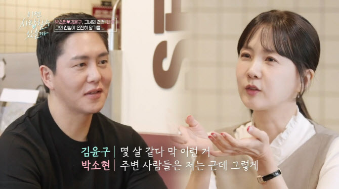 중년싱글연애예능[이데일리스타in최희재기자]방송인박소현이맞선남의나이에당황했다.(사진=tvNSTORY방송화면)지난16일방송한tvNSTORY‘이젠사랑할수있을까’(이하‘이젠사랑’)에서는박소현과김윤구의데이트가그려졌다.이날박소현의맞선남김윤구는“두번째만나면나이알려드린다고했는데”라며나이이야기를꺼냈다.박소현은주변반응을전하며“저는그렇게어리게생각을안했는데주변사람들은(김윤구가)무조건저보다어릴거라고,40대일거라고했다”고말했다.앞서박소현은맞선의조건으로또래인한두살을이야기했었다며“결혼정보회사대표님이한두살은너무(나이간격이)적다고해서두세살로넓혀달라고했다”고전했다.(사진=tvNSTORY방송화면)김윤구는“더많이차이나는건어떻게생각하냐.어린건어떻냐”라며1981년생43세라고답했다.열살연하라는말에박소현은“몰랐다.윤구씨미안하다.그렇게어리게는안봤다”며“마음을많이열고생각했는데갑자기81년생이라니까...”라고당황했다.또박소현은“열살많은여자친구괜찮나”라고물었다.김윤구는“저는알고나왔다.그렇게많게못느끼고있었다”며“저는나머지(맞선상대)두분안만난다고했다.나이말고이성으로봐주시면될것같다”고마음을전했다.박소현은결국눈물을보이며“제가정리를잘해보겠다.너무좋은분인데오해가있을까봐걱정스럽긴하다.윤구씨의문제가아니라저의문제인것같다”며“처음만났을때는이런문제가있을거라고생각못했다”고말했다.이어박소현은제작진과의인터뷰에서“열살이라는숫자를딱듣는순간이열살의틀을깨고나가야새로운세상에발을딛을수있을것같은데,그게안될거란걸느껴서제자신이원망스러웠다.제자신이답답해서눈물이났다”고설명했다.최희재([email protected])Copyright©이데일리.무단전재및재배포금지.