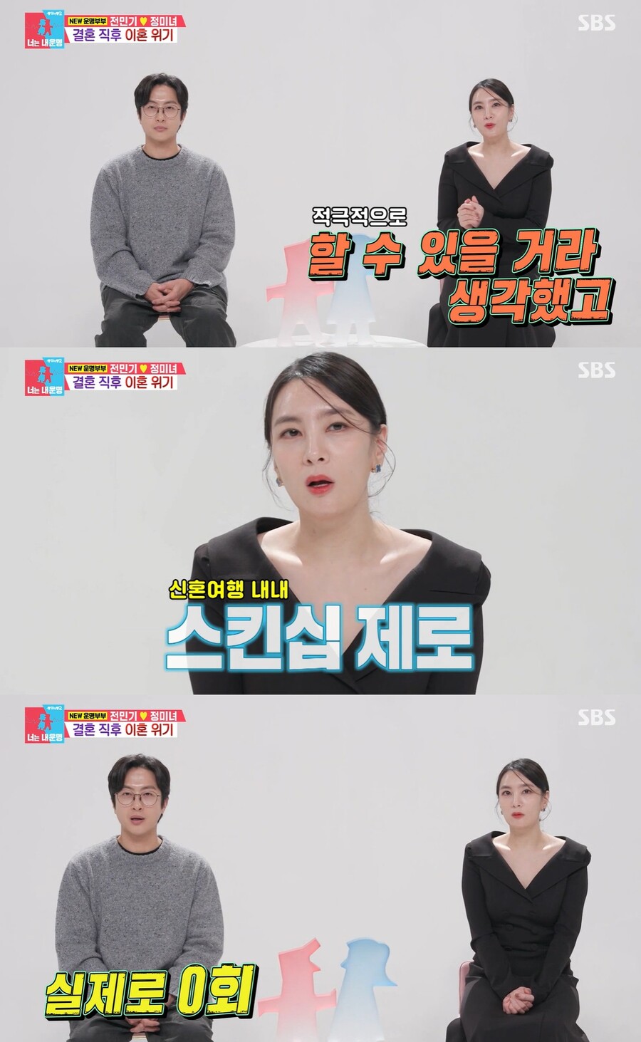 ▲전민기,정미녀부부.출처|SBS동상이몽2-너는내운명방송캡처[스포티비뉴스=장진리기자]전민기,정미녀부부가연예인판‘결혼지옥’의전말을공개했다.전민기,정미녀부부는16일방송된SBS예능프로그램‘동상이몽2-너는내운명(이하동상이몽2)’에출연해결혼전파혼,결혼후이혼위기를연이어겪고있다는사연을밝혔다.정미녀는“연애때부터쉽지않았다.결혼일주일앞두고‘이결혼못하겠다.우린헤어지는게맞는것같다’고말했다.사귀면서이남자랑결혼을못하겠다고생각하고있었는데전민기가결혼적령기라집에서는빨리결혼을했으면좋겠다는생각이있었더라”라고폭로했다.이어“아버지가여자친구있냐고했는데그때마침하필만나고있었다.얼굴이나한번보자밥먹게해서대전사시는부모님댁에갔다.아버지가보자마자미녀에게한눈에반하셨다.딸도없으니까상냥하고,그때가면을쓰고가서얼마나싹싹했겠냐.바로전화해서너무마음에드니까상견례날짜를잡자고하셨다”라고빠른결혼진행의이유를설명했다.정미녀는“저희둘이주도해서결혼을결심한게아니다보니까결혼하기직전까지도‘이게맞나?’,‘이사람이랑결혼해도되나?’이런물음표가계속있는상태였다.그때어머님아버님께서오셔서제손을꼭잡고‘우리만믿어라’라고하셨다”라고시부모의하드캐리를밝혔고,전민기는“그때안오셨으면어땠을지”라고답했다.신혼여행에서도이혼의위기를겪었다는정미녀는“부부관계도신혼여행을가면적극적으로할수있을것이라는생각이들었다.신혼여행즐겁게보내고싶었는데기간내내낮에관광만하고밤에는트윈침대에서따로잤다.신혼여행가서도스킨십없이돌아왔다”라고재차폭로했고,김구라는“성정체성을의심하게된다”라고화들짝놀랐다.전민기는“안믿는분이있을수있는데실제로0회”라고인정하면서도“그거에대한항변을드리자면결혼식준비로너무정신적,신체적으로피폐해진상황이었다.신혼여행을니스로갔는데바로다음날비행기를타고파리에가서또대여섯시간을기다렸다가니스가는비행기를타고24시간넘게만에도착했다.아내가관광을좋아하니까매일걸어다니다보니체력적으로너무힘들었다.9일동안반복되니체력으로소진이된상태였다”라고억울함을호소했다.두사람은이후에도아들을의사로키우는것에대한의견차이를보이다촬영중에티격태격했다.심지어전민기는“아들이와이프머리를닮았다”고막말을하는등지옥같은결혼생활을공개해눈길을끌었다.<저작권자ⓒSPOTVNEWS.무단전재및재배포금지>Copyright©스포티비뉴스.무단전재및재배포금지.
