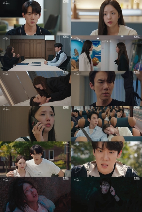 MBC금토드라마‘지금거신전화는’유연석과채수빈의진심이서로에게닿았다.지난14일(토)방송된MBC금토드라마‘지금거신전화는’6회에서는홍희주(채수빈분)의속마음을알아챈백사언(유연석분)이숨겨왔던순애보를폭발시키며안방극장을전율케했다.6회시청률은전국6.9%,수도권6.4%(닐슨코리아제공,가구기준)를기록,채널경쟁력을가늠하는핵심지표인2049시청률2.4%로모두자체최고시청률을경신했다.특히야유회에서사언과희주가함께2인1조줄넘기경기장면은순간최고시청률9.2%까지치솟으며제대로상승세를탔다.지난14일(토)방송된MBC금토드라마‘지금거신전화는’6회에서는홍희주(채수빈분)의속마음을알아챈백사언(유연석분)이숨겨왔던순애보를폭발시키며안방극장을전율케했다./사진=‘지금거신전화는’캡처어제방송에서사언은눈을뜨자마자자신의품안에서잠든희주를발견했다.전날밤일을기억하지못하는그는아내에게무슨일이있었는지캐물었지만,희주가미묘한표정으로자신을바라보기만하자더욱불안해졌다.잠시후,사언은협박범의목소리가희주와일치한다는사실을알게됐다.협박범의실체에충격받은사언은희주가남긴메시지를떠올리며애써상황을외면하려했던스스로에게분노했다.이어진희주와의수어수업에서사언은거짓말,오해,용서등부부의상황을비유하는단어들을가르쳐달라고말했다.하지만희주가사언에게가르쳐주려고준비한단어는진심,관심,애정등애틋한것들이어서안타까움을더했다.한편희주는언니홍인아(한재이분)와3년만에강렬하게재회했다.자신의상황을알고있음에도모른척한인아에게화가난희주는불쾌한마음을수어로표현하며자리를박차고나왔다.이에인아는“백사언그사람에대해잘안다고생각해?”라는의미심장한메시지를남겨향후전개를궁금하게만들었다.집으로돌아간희주는사언이자신의방에있는것을보고는숨겨둔협박폰이발견되지않을까마음을졸였다.그와중에감춰두었던란제리속옷이들통났고,두사람은실랑이를벌이다침대위에포개져넘어졌다.초밀착한두사람의텐션이시청자들의심박수를상승시켰다.지난밤희주와의입맞춤이떠올라자신도모르게뜨거워진사언은복잡한마음을추스르기위해재빨리상황에서벗어났다.희주가협박범이라는사실을알아챈뒤사언은처음으로그녀와통화를이어갔다.서로궁금한점을묻기로한두사람은대화를시작했고,희주는정략결혼이자신을자유롭게해주기위한결정이었다는그의대답에혼란에휩싸였다.이번통화로아내의속마음을눈치챈사언은“희주가원하는건진심,관심,이해,애정그런거였습니까?다줄수있습니다.희주가원한다면얼마든지”라고아내에게선전포고를날려이들의관계변화를기대케했다.다음날,희주와함께대변인실야유회를떠난사언은자신의방식대로희주를챙겨주기위해노력했다.운동회에서같은팀이된두사람은환상의호흡을자랑했고우승을구실로단둘이처음으로사진을찍으며잊지못할시간을보냈다.하지만행복한시간도잠시,대변인실직원들이등산하던중희주가절벽아래로떨어지는충격적인사고가발생하며극한의긴장감을선사했다.사언은순식간에종적을감춘희주에절규,아내를잃진않을까두려워했다.사언은필사적으로희주를찾아헤맸고조난당한그녀와연결할수있는유일한고리인협박전화만을기다렸다.같은시각,희주는절벽아래에서정신을차렸으나휴대폰은이미망가진상황.그녀는고심끝에오직사언에게걸수있는협박폰으로그에게전화했다.전화를받은사언은마치협박범에게말하듯희주에게말하며그녀의상태를확인했고조명탄으로위치를알려달라했다.방송말미,사언은“만약방법이있다면희주에게전해주십시오.걱정하지말라고내가금방가겠다고”라고외치며번쩍이는조명탄을따라아내에게달려가기시작했다.걱정과초조함으로눈시울이붉어진사언의모습이여운을선사하며다음회에대한기대감을끌어올렸다.7회는오는20일(금)밤9시50분방송.안병길기자[email protected]©스포츠경향.무단전재및재배포금지.