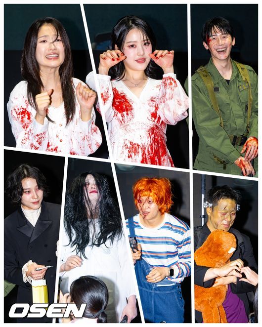 [OSEN=박준형기자]서울코엑스메가박스가하루동안‘공포체험장’으로변했다.영화‘살목지’출연진과이상민감독이약속했던공약을지키기위해귀신분장으로무대인사에등장하면서다.지난15일진행된서프라이즈무대인사에서배우들은각양각색의캐릭터로변신해객석을놀라게했다.김혜윤과장다아는피묻은원피스를입고등장해강렬한첫인상을남겼고,김준한은극중우교식병장으로,이종원은드라큘라백작으로변신했다.윤재찬은강시,이상민감독은긴머리를늘어뜨린처녀귀신,오동민은처키인형,김영성은프랑켄슈타인으로등장해현장을웃음과환호로채웠다.이날행사는‘살목지’가손익분기점을돌파하면귀신분장으로관객을만나겠다는약속을이행하는자리였다.출연진은“관객덕분에가능한결과”라며흥행에대한감사인사를전했고,상영관을직접돌며관객한명한명과하이파이브를나누는등적극적인팬서비스를선보였다.‘살목지’의흥행속도도눈에띈다.개봉7일째80만관객을돌파하며손익분기점을넘겼고,14일기준누적관객수는81만3256명을기록했다.개봉이후6일연속박스오피스1위를유지하며상승세를이어가고있다.영화는로드뷰에정체불명의형체가포착된사건을계기로,재촬영을위해저수지로향한촬영팀이검고깊은물속의존재와마주하게되면서벌어지는이야기를그린공포물이다.현실과맞닿은설정과긴장감있는전개로관객들의입소문을타고있다.앞서제작보고회에서배우들은다양한공약을내세우며흥행에대한기대를드러낸바있다.김혜윤은라이브방송을통한공포이야기콘텐츠를제안했고,이종원은실제촬영지방문인증을약속했다.윤재찬은“귀신분장을하고관객에게깜짝인사를드리겠다”고밝혔고,장다아역시“가장감사해야할분은관객”이라며이벤트를예고했다.그리고그약속은현실이됐다.관객을향한진심어린감사와유쾌한실행력까지더해진‘살목지’팀의행보에,흥행상승세가어디까지이어질지관심이쏠린다.2026.04.16/[email protected]오동민과김영성..처키인형과프랑켄슈타인김준한-이종원..우교식병장과드라큘라이상민감독..앞이안보이는처녀귀신윤재찬강시장다아..피묻은처녀귀신피묻은드레스입은김혜윤,너무무서워~Copyright©OSEN.무단전재및재배포금지.