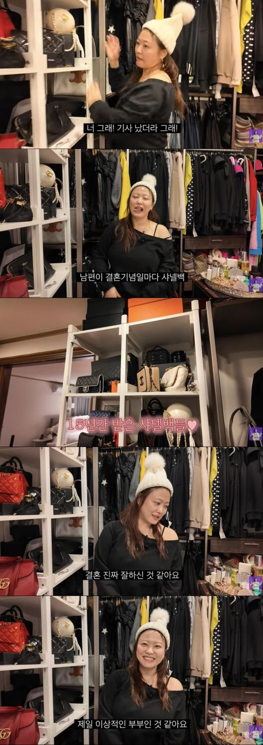 방송시청후작성된리뷰기사입니다.[OSEN=임혜영기자]심진화가김원효로부터받은명품가방을공개했다.15일채널‘김숙티비’에는‘고인물의찐템과추천먹방.마당이있는진화네집구경까지!’라는영상이게재됐다.이날김숙은심진화,김원효부부의집을찾았다.김숙은심진화의옷방을구경했고“정리잘해놨다”라며감탄했다.심진화는명품가방이꽉찬선반을공개했고김숙은“기사났더라.남편이결혼기념일마다샤넬백사준다고.지키는게맞냐”라고물었다.심진화는결혼15년차라며15개의명품백을공개했다.김숙은“결혼잘한것같다.제일이상적인부부인것같다”라고말했고심진화는부끄러운듯얼굴을가렸다./[email protected][사진]채널‘김숙티비’Copyright©OSEN.무단전재및재배포금지.