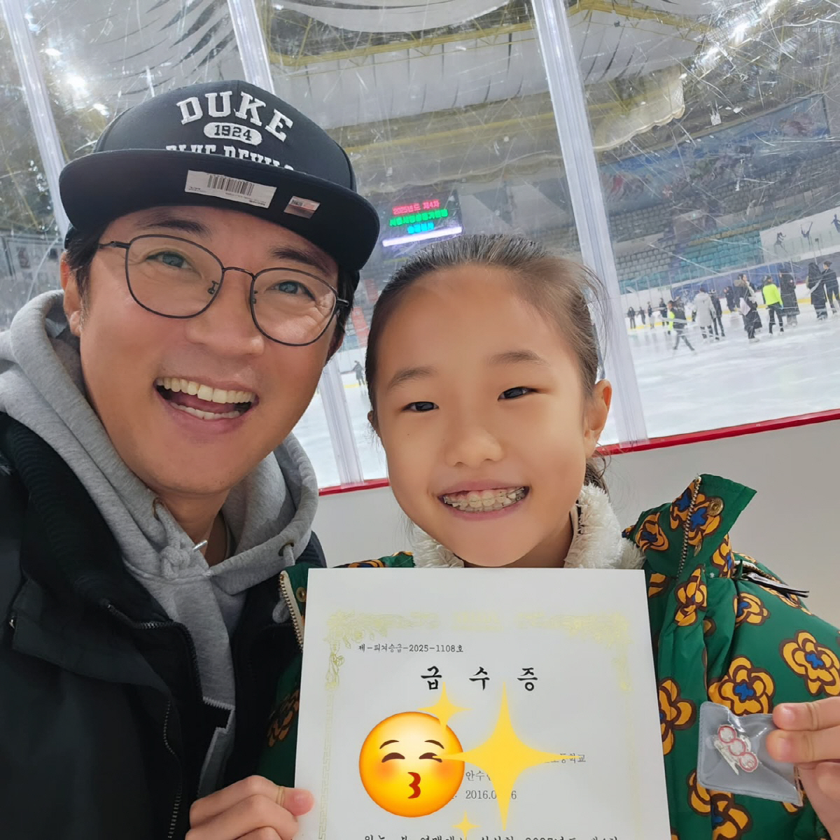 [스포츠조선정안지기자]배우안재욱이딸의피겨스케이팅승급시험합격소식을전했다.안재욱은지난14일"수현이피겨스케이팅승급시험합격"이라면서사진을게재했다.사진속에는급수증을들고환한미소를짓고있는안재욱의딸수현양의모습이담겨있다.이에안재욱은"대견하다.노력한만큼"이라며기쁨의미소를선보였다.이어수현양은기쁨의세리모니로피겨스케이팅동작을선보였고,아빠는그런딸의모습을카메라에담고는행복한미소를지어보였다.이후함께식사를하며데이트중인아빠와딸.이과정에서아빠와딸의똑닮은환한미소가눈길을끈다.한편안재욱은지난2015년9살연하의뮤지컬배우최현주와결혼해슬하에딸과아들을두고있다.안재욱은지난해방송된채널A'아빠는꽃중년'에출연해가족과의일상을공개한바있다[email protected]©스포츠조선.무단전재및재배포금지.