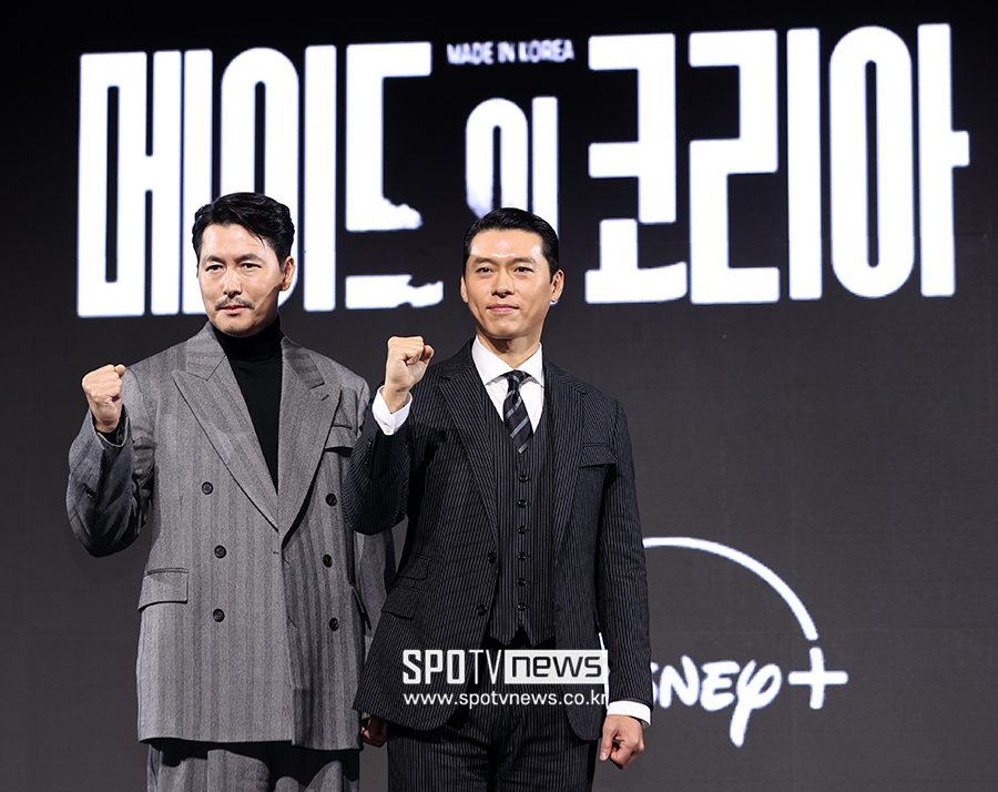 디즈니+메이드인코리아,정우성현빈[티브이데일리황서연기자]현빈과정우성이만나대한민국을뒤흔든다.강렬한욕망들이충돌하는'메이드인코리아',영화같은미장센을자랑하는우민호감독의첫드라마도전작이크리스마스이브에시청자들을찾는다.15일오전디즈니+오리지널시리즈'메이드인코리아'(극본박은교박준석·연출우민호)제작발표회가서울강남구그랜드인터컨티넨탈서울파르나스호텔에서열렸다.현장에는우민호감독,배우현빈정우성우도환서은수원지안정성일강길우노재원박용우가참석해작품에대한이야기를나눴다.'메이드인코리아'는1970년대혼란과도약이공존했던대한민국,국가를수익모델로삼아부와권력의정점에오르려는사내백기태(현빈)와그를무서운집념으로벼랑끝까지추적하는검사장건영(정우성)이시대를관통하는거대한사건들과직면하는이야기다.◆현빈과정우성이만났다,압도적인기대감현빈과정우성,이름이곧브랜드인두배우의만남으로'메이드인코리아'는제작단계부터기대작으로손꼽혀왔다.특히최근영화'하얼빈'으로청룡영화상남우주연상을수상한현빈은커리어하이를달리는와중차기작을공개하게됐다.현빈은미스터리한비즈니스를펼치는중앙정보부과장백기태역을맡았다.정우성은광기에가까운집념으로사건들을파헤치는외골수검사장건영캐릭터를연기한다.현빈은"'사랑의불시착'이후6년만의드라마복귀다.또한OTT플랫폼을통해전세계시청자들을만날기회가생겨기대가되고설렌다"라고말문을열었다."역사적배경을바탕으로하지만인물과모든스토리에는픽션을가미하다보니,파생된풍부한이야기들,결론이궁금한지점이있었다.캐릭터도다열어놓고감독님과상의하며마음대로만들어가는재미가컸다"라고덧붙였다.위압감있는캐릭터를만들기위해13kg를증량하는등진심을다해작품을준비했다고도덧붙였다.정우성은자신의캐릭터에대해"집요함도있겠지만,자기의직업관안에서임무를고집스럽게해내겠다는집념의사나이같다"라고말했다.이어"보통의작품들은실제인물과거리를두고조심스럽게가는데,이작품은실제사건안에가상의인물을넣고사건을전환하면서완벽한상상의이야기로끌고가더라.이상상력이배우로서캐릭터를디자인하는데엄청난용기와상상력을제공해주는것같았다.재미있는작업이었다"라고소회를밝혔다.이어정우성은현빈과의호흡에대해"새로운파트너로만났으니처음에는조심스럽게다가갔다.현빈에게도새로운도전이다보니어떤모습의백기태로나타날지관찰하는재미가컸고,카메라앞에서는서로준비한캐릭터의모습으로만나텐션이점점무르익어가는것이느껴지는현장이었다"라고말했다.이어"시즌2촬영중에는시즌1에서완성한호흡을서로익혀가고있다는걸느끼고있다.함께연기를맞춰가는즐거움을느꼈다"라고덧붙이며작품에대한기대를더했다.◆"제작품중가장재밌을것"우민호감독의자신감영화'내부자들''마약왕''남산의부장들''하얼빈'등을연출하며시대극장인으로자리매김한우민호감독은'메이드인코리아'를통해처음으로시리즈물연출에나섰다.현빈,정우성을위시해연기파배우들을집결시킨우감독은"캐스팅은운이었다.이배우들을한작품에모은다는것이쉽지않은데다행히제게좋은기회가찾아왔다"라며"지금까지했던작품들중가장현장에서재밌게찍었던작품인것같다.제작품들중에서가장재밌을것"이라고자신했다.우감독과영화'하얼빈'에이어'메이드인코리아'까지함께하게된현빈은"'하얼빈'을우민호감독님과함께하면서많은신뢰가있다.배우의새로운모습을끌어내시는능력이있으셔서함께해기쁘다.무엇보다도전작은우리나라의아픈역사,실존인물을연기한다는압박감이있었는데,이번작품은아예가상의인물을통해가상의이야기를하다보니감독님과그런작업을한다는기대감이있었다"라고말했다.우감독또한"'하얼빈'은배우들에게도저에게도힘든작품이었다.그힘든작품을함께겪어서그런지두번째같이하면서는서로눈치볼게없었다.현빈과솔직하게작품과현장에대해이야기를나누며재밌게찍었다"라고화답했다.이에우감독은"나는1970년대에태어난사람이고,사실그시절은우리부모님의청춘의시대였다.거창할수도있겠지만이작품은부모님에대한헌사일수도있다"라고말했다.이어"1970년대가격동,혼란의시대였다고하는데사실우리도지난해12.3사태부터엄청난일들을겪고있다.당시나지금이나별반차이가없는것같다.그런이야기들을2시간짜리영화에담기에는내능력이부족했고,12부작짜리드라마를통해제대로만들어보면어떨까하는욕심,욕망에서출발한작품"이라고말했다.이어우감독은"배우들의힘이가장컸고내연출의힘은배우들을믿는것이었다.그시절의욕망과광기를시청자분들께잘전달할수있으리라믿었고,그믿음을현장에서보여주는것이제연출의키아니었나싶다"라며"1970년대와지금이별반다르지않다는것을직접적으로느낄수있으실것이다.과거의시대와지금우리들의시대를비교해보는것이이시리즈의재미이지않을까싶다"라고말했다.디즈니+메이드인코리아그의말대로'메이드인코리아'에는현빈,정우성외에도수많은연기파배우들이총출동한다.우도환은육사출신장교이자백기태의동생인백기현역