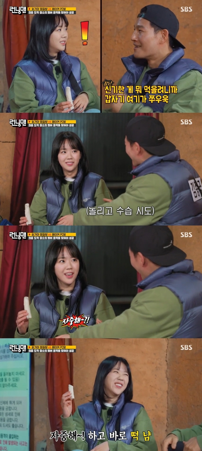 ‘런닝맨’.사진ㅣSBS지예은이김종국에게경고했다.1일오후방송된SBS예능프로그램‘런닝맨’에서는지예은을놀리는김종국이모습을보였다.이날방송에서김종국은가래떡을달라는지예은을보더니“신기한게뭐먹으려니까갑자기여기가쭈우욱...”이라며놀렸다.이에지예은이정색하자“그게아니잖아”라며진땀을빼기도했다.지예은은“자중해?!”라고경고하고바로떡을입에넣었고유재석은“너도단순하다.‘자중해’하고바로냠”이라며폭소했다.김종국역시“너도성격좋다.이걸먹어야하거든.화나거나삐치면이걸못먹거든”이라며웃었다.‘런닝맨’은매주일요일오후6시15분SBS에서방송된다.[서예지스타투데이객원기자]Copyright©스타투데이.무단전재,재배포및AI학습이용금지