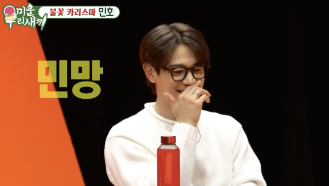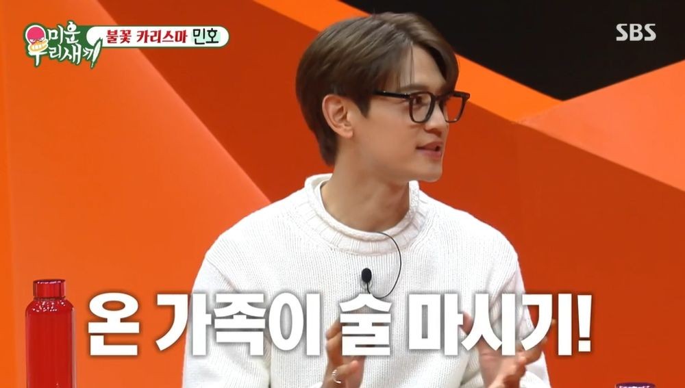 SBS‘미운우리새끼’캡처SBS‘미운우리새끼’캡처민호가술을마시고숙취해소제를먹는것에반대했다.12월1일방송된SBS‘미운우리새끼’에서는샤이니민호가출연했다.민호가남긴유명한명언으로“난술한테지는걸용서할수없다”가소개됐다.민호가싫어하는말은“술취했네”,싫어하는일은“술마시고숙취해소제먹는것”이었다.이에민호는“20대초반넘치는열정에한말이다.난술에지면안돼.술에취하면혀도꼬이고이상한모습을보이는게싫었다.숙취해소제먹는건아직도반대”라고말했다.서장훈이“광고가들어올수있는데”라고말하자민호는“그렇다면다르다”고반응해웃음을자아냈다.신동엽은“드디어찾았습니다”라고너스레를떨었고,서장훈도“내몸에맞는숙취해소제”라고호응해웃음을더했다.(사진=SBS‘미운우리새끼’캡처)[뉴스엔유경상기자]뉴스엔유경상yooks@기사제보및보도자료[email protected]ⓒ뉴스엔.무단전재&재배포금지Copyright©뉴스엔.무단전재및재배포금지.