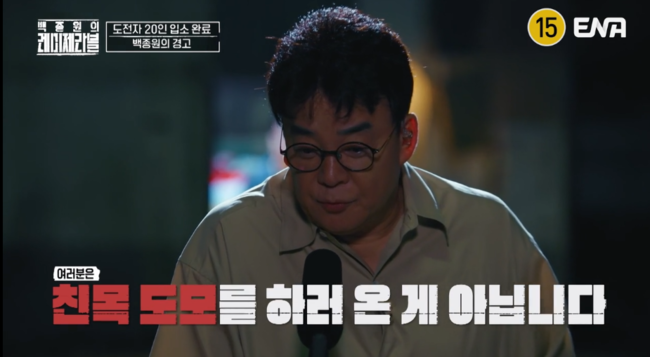 '레미제라블'방송[OSEN=최지연기자]'백종원의레미제라블'백종원이첫화부터참여자들의기강을잡았다.30일,ENA예능'백종원의레미제라블'(이하'레미제라블')에는인생역전을노리는20인의도전자들의첫소개가그려졌다.이날도전자들은4만평의폐공장을세트장으로개조한공간에서모였다.도전자들은"오늘은뭐할까?밤새다썰으라고하는거아니야?","잠은어디서자라고할까요?"등의대화를나누며긴장감을낮췄다.한도전자는카메라를보고"형TV나왔다"고너스레를떨기도했다.이를지켜보던백종원은심기불편한표정을지었다.백종원은"긴장안하고있는데?자기들끼리웃고떠들고"라며실망감을드러냈다.그는도전자들의절박함을보고싶었기때문.'레미제라블'영상결국백종원은"여러분은이자리에친목도모를하러온게아닙니다”라고전해현장분위기를얼음장으로만들었다.이후도전자들에게보여진건양파3톤이었다.도전자들은"양파산이었다.","아파트2,3층높이인것같았다"며스케일에놀랐다.이들은첫미션으로'양파3mm로세로채썰기'를받았다.한편'레미제라블'은'장사의신'백종원을필두로일식의김민성,고기의데이비드리,중식의임태훈,한식의윤남노셰프가담임셰프로출연한다.각자의분야에서실패와정상을모두경험한담임멘토들이도전자들에어떤현실적인노하우와충고를전할지기대가모이는바다.[사진]'레미제라블'방송[email protected]©OSEN.무단전재및재배포금지.