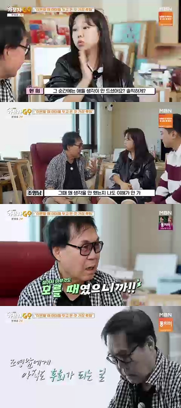 (엑스포츠뉴스김예은기자)가수겸화가조영남이전처윤여정에게미련이있다고밝혔다.30일방송된MBN'가보자GO3'에서는조영남이두번의이혼과두아들을언급했다.이날조영남은여러명의여자친구와만나고있다면서도결혼생각은없다고밝혔다."두번결혼했으면충분하다고생각한다"는것.조영남은배우윤여정과1974년결혼했으나1987년이혼했다.이후1995년18살연하여성과재혼했지만파경을맞았다.조영남은이러한자신의인생을후회하지않는다고밝혔다.그러자안정환은"후회는안하지만아쉬운게있진않냐"고물었고,조영남은"후회겸아쉬움.제일큰거.딱하나있다.내가(이혼하고)집나올때왜애들생각을안했던가"라며두아들을언급했다.결혼13년만인1987년이혼한조영남은윤여정과의사이에서두아들을뒀으나교류없이지내왔다고.이에홍현희는"그순간에는애들생각이안들었냐"고질문했고,조영남은"왜안들었는지나도이해가안간다.젊을때는그런생각을못한다.모를때였으니까"라고답했다.이어"그후에는한번도연락을안했냐"는질문에도"그렇다"고답했다.더불어조영남은"근데나는버킷리스트가없다.하고싶은걸다했다"더니"딱한가지있는건OOO이랑통화하는거"라고얘기했다.이를들은홍현희와안정환은당황스러움을감추지못했고,홍현희는"그동안통화를안했을것아니냐.아들한테부탁할수없냐"고얘기했다.MC들의반응과,아들을통해연락을시도해볼수있다는점,제작진의자막등을따져보면'OOO'은윤여정으로추측된다.이에MC들은"만나면무슨얘기하고싶냐"고질문했고,조영남은"내가궁금한건딱이거다.누가먼저'어프로치(접근)'했냐.내가먼저했으면왜한것같냐"는답을해당황스러움을안겼다.이를들은홍현희는"결혼까지했는데그걸다시물어보고싶냐.미련이남아있는거냐"고물었고,조영남은"뭐그런뜻이겠지"라고답했다.사진=MBN방송화면김예은기자[email protected]©엑스포츠뉴스.무단전재및재배포금지.