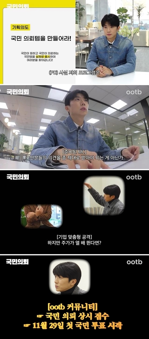 MZ세대들의폭발적인사랑을받고있는멀티플랫폼제작사오오티비(대표이현숙)가사상최초R&D예능‘국민의뢰(가제)’를전격론칭한다.‘국민의뢰(가제)’는국민이원하는‘국민템’개발의뢰를받고,기업과협력해실제신제품을개발하고출시하는과정을그리는신개념예능.매회시민인터뷰를통해특정품목에대한다수의제품아이디어를받아기업에전달하면,기업이실제개발가능한후보를정하고,마지막대국민투표를거쳐단하나의‘국민의뢰제품’을선정해실제출시하는초대형프로젝트다.국민의견취합과제품개발에적지않은시간이소요되는만큼,프로그램은2025년1월첫선을보일예정이다.그간50만,100만,150만까지구독공약을걸고콘텐츠내에서실제공약을이행하며시청자들과밀접하게소통해온오오티비는,‘국민의뢰(가제)’를통해또한번극강의소통력을보여줄전망.매회다양한제품군에대한시민들과시청자들의아이디어와의견을적극받아들일계획으로,앞으로탄생할신제품에대한초미의관심이모인다.이미오오티비스튜디오(ootbSTUDIO)유튜브채널커뮤니티를통해제품에대한구독자들의아이디어를제보받기시작해,구독자들의기상천외한아이디어가댓글로쏟아지고있어이중어떤아이디어가채택될지더욱기대되는상황.가제로정해진‘국민의뢰’의정식프로그램명역시댓글창에서‘국민의뢰’를받아볼예정이라,시청자들이제안할기발한프로그램명에관심이쏠린다.MZ세대들의폭발적인사랑을받고있는멀티플랫폼제작사오오티비(대표이현숙)가사상최초R&D예능‘국민의뢰(가제)’를전격론칭한다.프로그램의MC로는대한민국대표보이그룹멤버이자재치넘치는예능감까지갖춘2PM장우영이낙점됐다.데뷔후첫단독예능에나서게된장우영은‘전과자:매일전과하는남자’등오오티비에서선보이는다양한콘텐츠들을잘알고있다며기대감과설렘을드러냈다는후문.또장우영은시청자들과의소통이중요한독특한프로그램콘셉트를듣고는“이왕할거면국민들의의견을제대로받아준비해야”라며남다른각오를드러낸다.오오티비는27일최초공개된티저영상을통해장우영과제작진의첫만남현장을비롯,장우영이즉석에서기업에실제제품개발의뢰까지나서는모습을전격공개했다.제작진의설명을듣고프로그램기획의도를완벽히숙지한장우영은“나는국민의종이다”라고선언하며‘국민의뢰(가제)’만의콘셉트에대몰입한다.또장우영은평소자신의소비습관에대해까다롭게제품을구입하는편이라며“많이따진다.무작정비싸도말이안되지만,너무저렴해도의심을한다”고밝혀,가성비는물론신선한아이디어와좋은품질을갖춘신개념국민아이템을개발해낼수있을것이라는신뢰감을주기도.특히오오티비는구독자들에게사전의뢰를받아논알콜소주,한잔크기소주,빵없이토핑만있는피자등다양한아이디어를소개했는데,이에장우영은피자와주류회사담당자에게즉석에서전화를걸어제품개발의뢰까지나섰다.통화중한담당자가긍정적인반응을보이자“저희가직접찾아가도괜찮으실까요?”라며적극적인추진력을발산한것.이와함께장우영이한기업을찾아제품개발을본격적으로논의하는장면도맛보기로공개됐는데,기업대표가“(개발비용이)비싸지”라며난색을표하자장우영은“주가가열배뛴다면?”이라는말로대표를무장해제시켜,앞으로의‘美친활약’을기대케했다.‘워크맨’,‘네고왕’에이어또한번기업과협업하는예능을기획해새로운‘레전드예능’의등장을예고한고동완PD는MC장우영에대해“평소다른프로그램에서남다른예능감을눈여겨봐캐스팅하게됐다”고섭외이유를밝혔다.또“궁극의‘소비자니즈’를반영하면세상에없는정말창의적인제품이나올수있을것같다는기대로‘국민의뢰’를기획하게됐다”고배경을밝혔다.야심찬시작을알린오오티비의새예능‘국민의뢰(가제)’는29일오오티비스튜디오(ootbSTUDIO)유튜브채널커뮤니티를통해원하는제품에관한첫국민의뢰투표를시작할예정이며,각종국민아이템의의뢰와개발과정을상세히담아낸본편을오는2025년1월첫공개할계획이다.[손진아MK스포츠기자][ⓒMK스포츠,무단전재및재배포금지]Copyright©MK스포츠.무단전재및재배포금지.