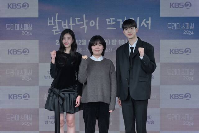 10일온라인기자간담회개최"사랑하는사람이생각나는밤될것"배우오예주,감독이진아,배우김강민(왼쪽부터)이10일오후3시온라인으로진행된KBS2'드라마스페셜2024'다섯번째작품'발바닥이뜨거워서'제작발표회에참석했다./KBS2[더팩트ㅣ최수빈기자]사랑하는사람이절망속에서고립되는것을지켜볼수밖에없는가족의마음은어떨까.'발바닥이뜨거워서'는이런상처를가진사람들에게"멈추지않고사랑을주는게유일한방법이다"라는메시지를전할예정이다.발바닥을뜨겁게움직이는인물들의이야기를통해작은온기를선사할'발바닥이뜨거워서'다.KBS2'드라마스페셜2024'의다섯번째작품'발바닥이뜨거워서'(극본한봄,연출이진아)기자간담회가10일오후3시온라인으로진행됐다.현장에는연출을맡은이진아감독과배우오예주김강민이참석했다.'발바닥이뜨거워서'는은둔형외톨이언니를둔여고생하늘이(오예주분)가언니를방에서탈출시키기위한계획을시작해벌어지는이야기를그린작품이다.이진아감독은"은둔형외톨이와우울증같은소재가조금더많이다뤄졌으면좋겠다는생각을했다"며"'발바닥이뜨거워서'는우울증을곁에서지켜보는가족들의감정을섬세하게다뤘기때문에좋은작품이될것같았다"고연출계기를밝혔다.이어"조금은무거울수있는소재이지만전체적인분위기는가볍게연출했다.시청자분들이조금더편안하게보실수있는방법은무엇일까에대해고민을많이하고준비했다"고설명했다.배우오예주(왼쪽)와김강민이'발바닥이뜨거워서'로호흡을맞춘다./KBS2오예주는장기출장을다니는아빠와은둔형외톨이언니노을(양의진분)을둔유하늘역을맡는다.언니의생사를매일같이확인하며지내던어느날하늘은이사간친구를만나기위해제주도행을결심한다.그리고이내굳게닫힌언니의방문을두드린다.오예주는"대본을읽기전에제목이가장먼저눈에들어왔다.읽고나니왜이제목인지이해가됐다"며"인물들이변화하고성장하는과정이시청자분들께위로와공감을줄수있을것같았다.굉장히아름다운드라마라고생각했다"고출연계기를밝혔다.오예주는우울증에걸린언니를바라보는하늘의내면에집중하면서캐릭터를구축했다.그는"우울증관련한공부도많이필요한캐릭터였다.감독님께서추천해주신책이나영화를참고하면서섬세한부분을채워가려고노력했다"고전했다.이어"하늘이는반응이없는언니에게자꾸만대화를시도하는인물이다.같이있지만같이있는것같지않은느낌을많이받았다"며"촬영할때도혼자말하고있다는느낌을많이받아서그부분은좀힘들었다.하지만하다보니익숙해져서재밌게촬영했다"고덧붙였다.김강민은하늘을짝사랑하는같은반친구김양으로분한다.자신을바라봐주지않는하늘로인해마음고생하던중하늘의가족이자신의집세입자로오며뜻밖의변화를겪게된다.'발바닥이뜨거워서'는은둔형외톨이언니를둔여고생하늘이(오예주분)가언니를방에서탈출시키기위한계획을시작해벌어지는이야기를그린작품으로10일오후10시50분KBS2에서방송한다./KBS2김강민은"김양이주는힘을표현해보고싶었다.김양이무심하게때로는진지하게했던말들이하늘이에게는큰위로가됐다"며"제가미처발견하지못했던부분을생각하게해준캐릭터라욕심이났다"고전했다.이어"김양은색깔을어떻게입히느냐에따라서다른인물이될것같았다.감독님께서도'쉽지않은인물이다'라고말씀해주셨다"며"감독님을뵐때마다이인물을다르게해석해서가지고갔다.그런과정을많이거치면서캐릭터를구축했다"고덧붙였다.오예지는이런김강민과김양의싱크로율이"65%다"라고말해놀라움을자아냈다.그는"김양자체만할수있는엉뚱하면서도미워보이지않는장난이있는데이런포인트가김강민배우에게도보였다"며"이캐릭터가그냥나온게아니라는생각이들었다.본인의매력이잘스며든것같다"고칭찬했다.이에김강민또한"카메라가돌지않을때오예지배우랑얘기하는데괜히마음이짠했다.진짜제가힘을주고싶다는생각이들었다.정말더할나위없이최고였다"고말했다.끝으로이진아감독은"작품이정말따뜻하다.보시면따뜻함을오래유지하실수있을것같다"며"사랑하는사람도생각나는밤이될것같다.많은사랑부탁드린다"고시청을독려했다.'발바닥이뜨거워서'는이날오후10시50분방송한다[email protected][연예부|[email protected]]발로뛰는더팩트는24시간여러분의제보를기다립니다.▶카카오톡:'더팩트제보'검색▶이메일:[email protected]▶뉴스홈페이지:http://talk.tf.co.kr/bbs/report/writeCopyright©더팩트.무단전재및재배포금지.