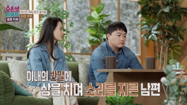 MBC‘오은영리포트-결혼지옥’캡처MBC‘오은영리포트-결혼지옥’캡처따끔부부가결혼생활13년동안가장크게싸운부부싸움을말했다.12월9일방송된MBC‘오은영리포트-결혼지옥’에서는솔직해서따가운말,따끔부부가출연했다.남편이아내에게먼저이혼합의서를내밀정도로심각한갈등이있었다.아내는문제의8월14일부부싸움에대해“생활비통장으로100만원을보내달라고했다.딸이도수치료를받고있어서130만원보내달라고했더니100만원이라고하지않았냐고.내가돈을보내는데왜네가생색이냐고하더라”고말했다.이어아내는“남편이‘가게에서버는돈은네돈이지?내가버는돈은?’그랬는데제가‘네돈’이라고해서화가난거”라며반말에화가난남편이마치오빠가동생을혼내는느낌으로나왔다고토로했다.반면남편은“내가벌어서내돈이라고표현하는데가게에서버는돈은네돈인데왜내돈은내돈이라고말못하나.가족이써도내돈이라고말할수있지않나.와이프는‘내돈’이라는표현에꽂혀서안듣더라.반말하지마라,막말하지마라.참다저도폭발했다”며“제가소리치고테이블친것만남았다”고억울해했다.아내는부부싸움에대해“남편이탁자를쳐서놀랐다.눈이저를잡아먹을듯이한대때릴것같았다.어릴때엄마가훈육한다고저를불꺼진방에혼자있게했다.공포에질려서소리를지른기억이났다.그공포감이순식간에덮쳐서숨을못쉬겠고머리가하얗게됐다.나를때리고소리지를것같아무서웠다”고공포심까지고백했다.(사진=MBC‘오은영리포트-결혼지옥’캡처)[뉴스엔유경상기자]뉴스엔유경상yooks@기사제보및보도자료[email protected]ⓒ뉴스엔.무단전재&재배포금지Copyright©뉴스엔.무단전재및재배포금지.